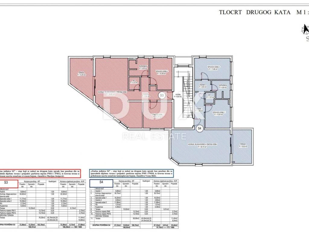 A penthouse with an impressive sea view is for sale in Petrčane near Zadar. The apartment with a total living area of 67.33 m2 consists of two bedrooms, a living room, a kitchen and a dining room, a toilet, a bathroom, a hallway and a terrace of an additional 10.02 m2. The apartment also has a spacious roof terrace of 70 m2 and two private parking spaces in the courtyard of the building. The total usable area of the apartment together with all the accessories is 186.05 m2 (97.78 m2). Quality materials were used in the construction, the floor and wall coverings are of the highest standards, in addition, there is underfloor heating in all rooms and cooling via air conditioning, and quality PVC joinery with mosquito nets and electric shutters. The property is 150 m from the sea. Petrčane is 12 km from the urban center of Northern Dalmatia, the city of Zadar. Nearby there are various facilities such as beautiful pebble and sandy beaches, numerous national and nature parks, and impressive Dalmatian islands. For example, Kraljičina plaža in the historic town of Nin near Petrčane is the longest sandy beach in Croatia, and next to it there is a locality with medicinal mud. The nearest airport is 24 km from the place.