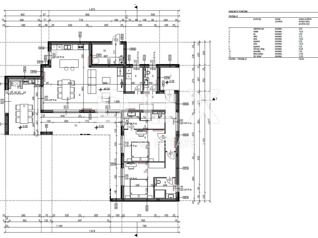 Projektom je predviđena gradnja samostojeće prizemnice površine 150 m2, od čega je 130 m2 stambeni dio, a 20 m2 čini natkrivena i poluzatvorena terasa.