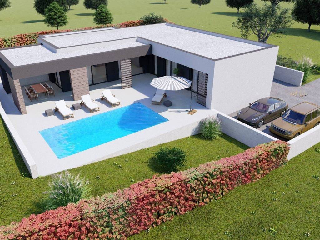 Vani je predviđen bazen i natkrivena ljetna kuhinja u čijem je nastavku natkrivena terasa.