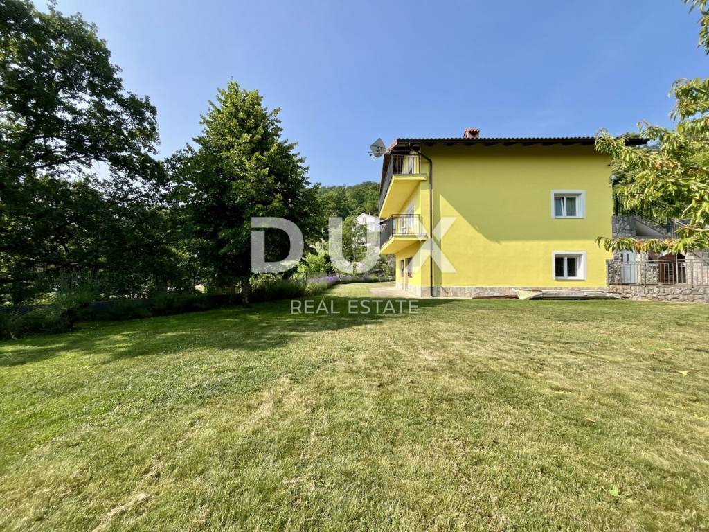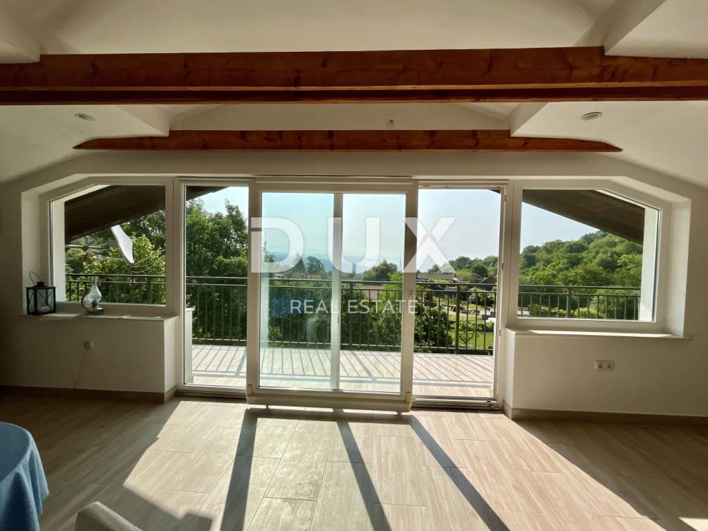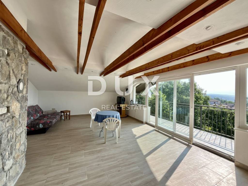 Just 6 km from Opatija and the sea, in a peaceful environment full of greenery, birds and sun, this exceptional detached house of 318 m with a sea view is located. The house extends on a plot of approximately 1800 m and is arranged over three floors: Ground floor: two-bedroom apartment in the unfinished phase and a large tavern with its own bathroom. First floor: furnished apartment consisting of a spacious living room with kitchen and dining room, two bedrooms, bathroom and large balcony. Second floor (high attic): apartment with the same layout as on the first floor, completely completed in a "turnkey" system. The location offers complete privacy, peace and quiet, with the constant presence of sunlight, and what sets this property apart is the beautiful and carefully landscaped garden. The owners have been awarded three times for the most beautiful garden for their garden and garden design, which confirms the attention and love for every detail. Heating is possible with wood or electricity, and the entire property has been maintained with special care. The house is located in a quieter part of Rukavac, ideal for rest and relaxation, but at the same time it is only an 8-10 minute drive from all essential amenities - shops, schools, kindergartens and clinics. Ideal for a large family, a multi-member household or as an investment for tourism.
