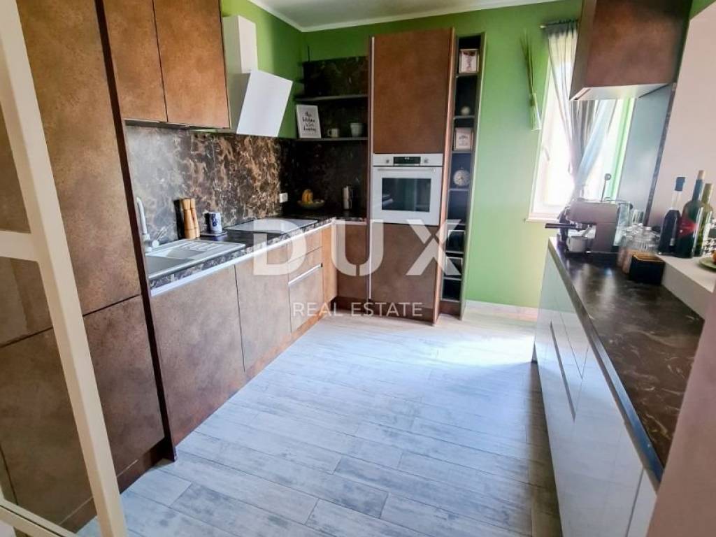 For sale is an extremely attractive apartment of 132 m, located in a house, with complete privacy, a separate entrance and its own garden. It is a one-story apartment that offers a functional layout and top comfort - ideal for family life or a luxurious vacation. The apartment consists of three bedrooms, two bathrooms, a fully equipped kitchen with a dining room and a bright living room with access to a terrace overlooking the sea and Opatija. It is fully furnished with quality furniture and ready to move in immediately. The ownership is neat. A special advantage of this property is its own garden with a barbecue, perfect for enjoying the Mediterranean lifestyle, as well as two large storage rooms in the basement, suitable for storing things throughout the year. The apartment has two private parking spaces, which is an exceptional value in this area. The apartment is located in an extremely sought-after location: - only 320 meters from the sea and beach - 5 minutes walk to the center of Opatija and the Lungomare promenade - 5 minutes drive to Volosko - 10 minutes drive to Lovran To arrange a visit to the property, call the agent with confidence - consultation in German possible.