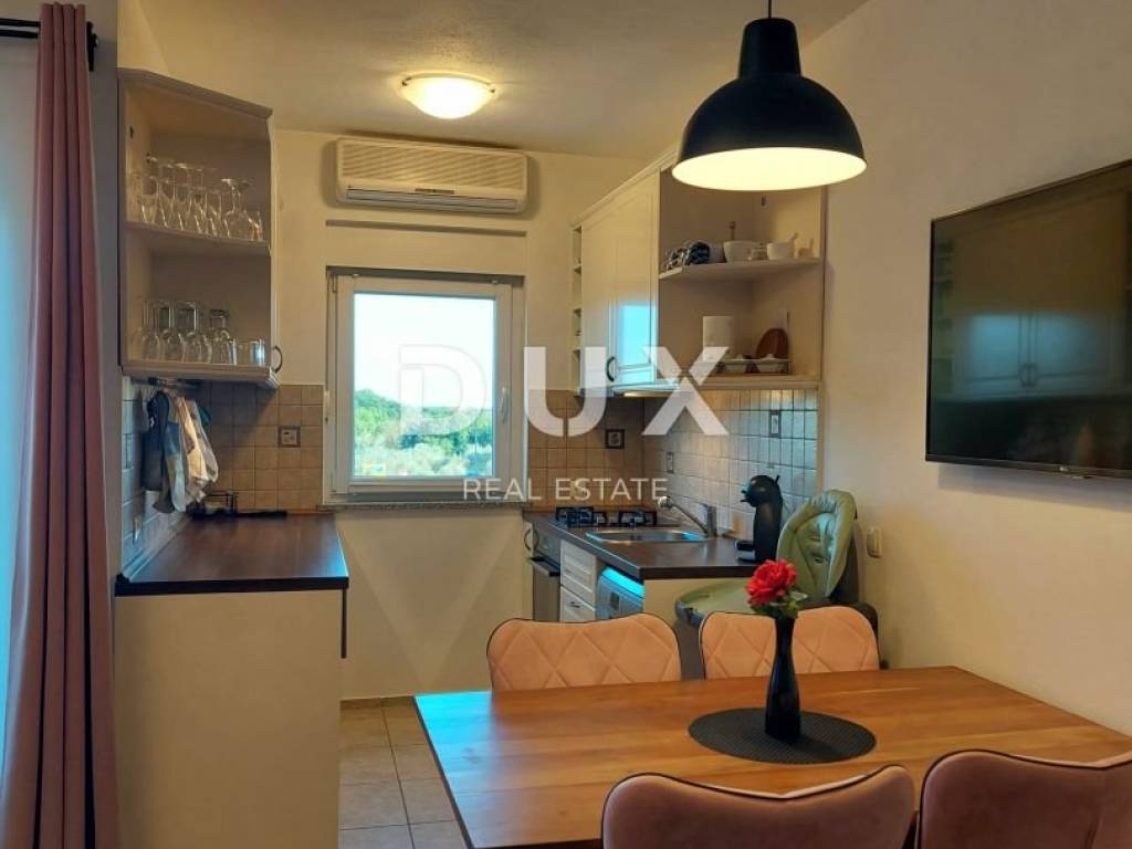 The picturesque charming town of Rovinj, located on the west coast of the Istrian peninsula, was once a port and a fishing village, and today it is one of the most developed tourist destinations with its unique combination of traditional and modern. It successfully combines the tradition of a fishing village with modern tourist trends, a rich gastronomic offer and a high standard of tourist service. This is precisely why it attracts many visitors year after year and recorded a record 3 million overnight stays during the last seasons. Visitors often return to it, so why not become the owner of one of the valuable properties in this magical city. An apartment for sale in Rovinj in a smaller residential building with 9 apartments. The apartment is located on the high ground floor. The apartment consists of an entrance hall, two bedrooms, bathroom, pantry, living room with kitchen and dining room, and a terrace. The apartment is heated by a pellet stove, and an air conditioner is installed for cooling. The apartment also has a garage and a storage room in the basement and a parking space in front of the building. The apartment is fully furnished and ready to move in immediately. Ownership and all documentation in order.
