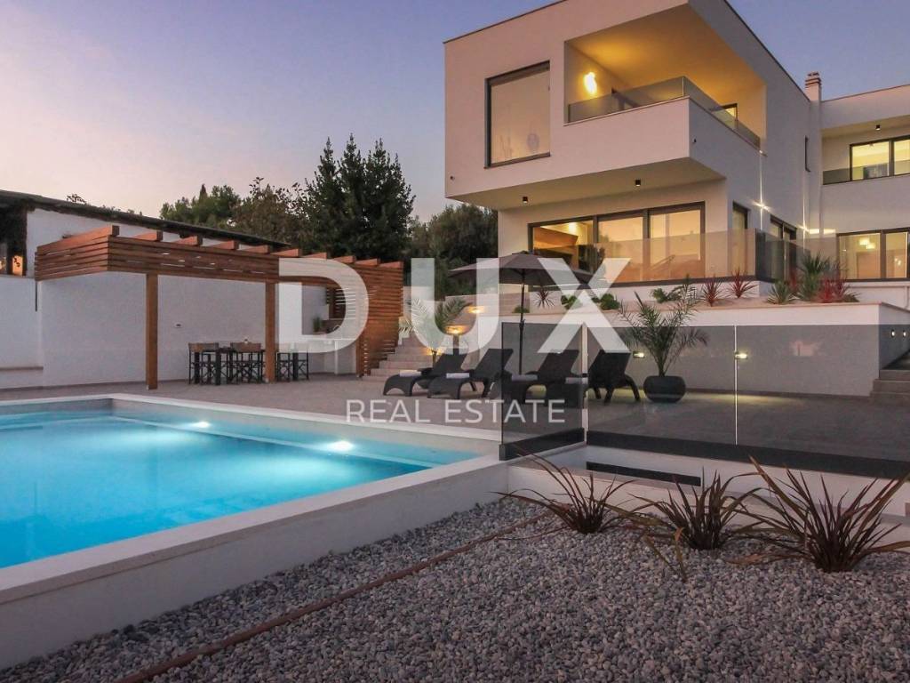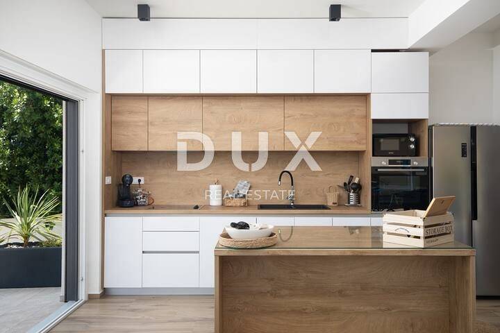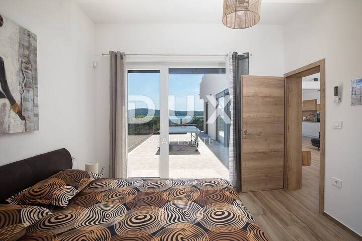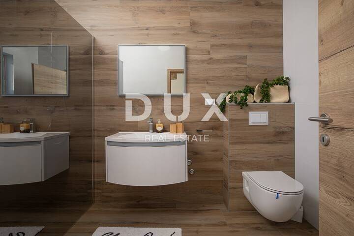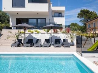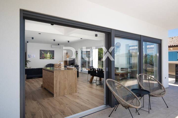 We proudly present this unique and unrepeatable villa situated in a quiet and residential part of the Pomer settlement. It is a villa situated in a location that offers one of the most beautiful open views of the sea, all while still being just a few short minutes' bike or car ride from well-maintained beaches, promenades and all the amenities needed for everyday life. Take advantage of this opportunity and become the proud owner of a unique property that will enchant you every time. VILLA DESCRIPTION: The villa thus consists of 195m2 of living space, divided into two floors, ground floor and first floor. Upon entering the ground floor of the villa, we find ourselves in a graceful lobby with a designated space for a wardrobe and a small storage room. The same lobby then leads us to the living area, designed according to the "open space" system, without partition walls. With high ceilings and a luxuriously open view, which reaches from almost every room of the villa, a feeling of high luxury and a feeling of infinite connection of the villa's rooms with its garden and landscape is created. In the living area of the villa, you have the opportunity to spend your time in the living room, which is larger in size, planned to ensure the maximum level of comfort and functionality, and perfect for relaxing with your favorite series or movie. Next to the living room, there is an equipped and modern kitchen with an island, which harmoniously connects with the dining room, sufficient for the whole family. With the help of large sliding glass walls, the living area almost continuously expands towards the outdoor semi-covered terrace, with seating and a dining table. Considering that the owners built the villa as a private property, a great focus was dedicated to the functionality of the rooms and the simplicity of staying in the villa, so the ground floor of the villa also has a guest toilet, an additional storage room under the staircase with a technical room, and the first of a total of three bedrooms. This bedroom has its own bathroom, and its special feature is that with the first rays of sunlight in the morning you can enjoy a beautiful view of the greenery and the sea from your bed, of course, there is also a small terrace perfect for drinking your morning coffee, as well as access to the garden and swimming pool. The upper floor of the villa is accessed by an internal staircase, here we can find two additional bedrooms, each of which has its own bathroom, and one of them also has access to a balcony from which the same almost unrepeatable view of the sea extends. On this floor there is also an additional room that is currently used as a private SPA zone with a gym, and which has access to the same balcony already mentioned, this room can easily be converted into a separate office space, a playroom, an additional bedroom or something similar. DESCRIPTION OF THE GARDEN: The villa is located on a plot of 991m2 in total, of which 766m2 refers to the landscaped garden. The villa's yard is completely fenced and therefore safe for carefree play and fun for your youngest family members and pets. The villa's yard is decorated with Mediterranean plants, which make staying outdoors so much more enjoyable. We must definitely point out that under the already mentioned partially covered terrace, there is a comfortable 45m2 tidal pool. It is possible to install a water heating system for the same pool, and everything has already been prepared for it. Next to the pool is a covered summer kitchen, perfect for entertaining friends and family. Further after the pool is a green part of the yard, perfect for resting and relaxing after an active day. An automatic irrigation system takes care of the greenery and plants in the yard. There is enough parking space for up to 4 cars in the yard of the villa, and the same parking spaces can be covered according to the wishes and needs of the future owners. ADDITIONAL INFORMATION: * The villa is being sold fully furnished, as can be seen in the pictures. * The villa is equipped with air conditioners in every room with the possibility of heating and cooling the space, it also has floor heating in all bathrooms, as well as a chimney with the possibility of installing a pellet or wood stove. * The villa has an alarm system with sensors and cameras. * The furniture that was chosen was chosen specifically for this villa. * The ownership of the villa is in order, owner 1/1, a natural person. LOCATION DESCRIPTION: The villa is located in a smaller residential part of the Pomer settlement, it is surrounded by family villas or holiday villas, and due to its location, it is only a 5-minute easy drive from all the necessary facilities for everyday life. Thus, in the very center of the town there are shops, restaurants, cafes, a school and a kindergarten, and we are sure that you will be additionally interested in the fact that the same village has a high-quality harbor perfect for the safe mooring of your boat. In addition, there are beautiful beaches with accompanying facilities, such as beach bars and restaurants on the sea, as well as numerous cycling and walking paths. The villa is strategically positioned in this location, all because of the unique view, as well as the peace and privacy it offers while still being in close proximity to various amenities. We must certainly point out that the villa is located only 7 minutes drive from the center of Medulin, 10 minutes easy drive from Premantura and Cape Kamenjak, and only 10 minutes easy drive from the largest city on the Istrian peninsula, the city of Pula. It is equally important to us to point out that access to the villa is easy, all thanks to very good traffic connections, and the proximity of Pula airport, which is only 15 minutes drive away. For any additional questions, necessary information or if you wish to organize a viewing of the property and its location, please feel free to contact us at any time.