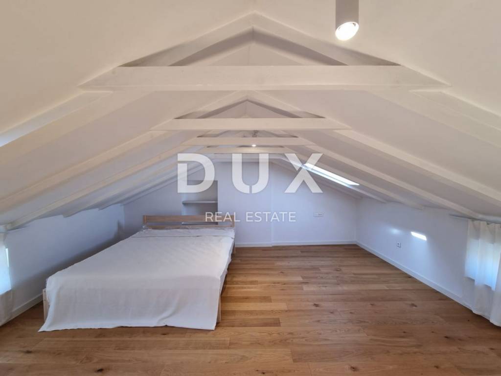 Poreč is a city where, throughout the year, you can find a place for rest, entertainment, sports, recreation, sightseeing of historical heritage and numerous tourist attractions. You can cycle or walk along the bicycle paths along the sea coast, through the rural hinterland, Mediterranean groves with the remains of castles, prehistoric hillforts, churches and rustic villas. The Poreč coast is 37 km long and has 21 beaches with the Blue Flag - a symbol of clean sea. For boat owners, the Poreč coast provides an inexhaustible source of exploration while they can anchor their vessel in one of the well-equipped Poreč marinas. Not far from Poreč, a newly adapted duplex apartment of 85 m is for sale, located on the first floor and in the attic of a middle-sized house in a row with a total of two apartments. On the first floor there is a kitchen, dining room, living room, bedroom, bathroom, hallway and internal stairs leading to the attic. The attic has a bedroom, bathroom, storage room and a gallery that can be used as an additional bedroom or office. The apartment opens onto a spacious 15 m terrace with a sea view. The apartment is equipped with electric underfloor heating, and the first phase of air conditioning installation has been carried out in all rooms. It is a stone building whose complete renovation was completed in 2023 - a new roof was installed, electrical and plumbing installations were replaced, the apartment is covered with top-quality Italian ceramics, while oak parquet floors are installed in the bedrooms. The joinery is PVC. The apartment is furnished, never used and ready to move in immediately. One parking space is provided on the common area. The quiet location on a side street, in close proximity to the sea and all necessary amenities, makes this property an ideal choice for year-round living or as an investment for tourist rental.