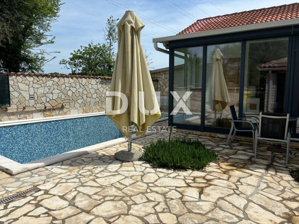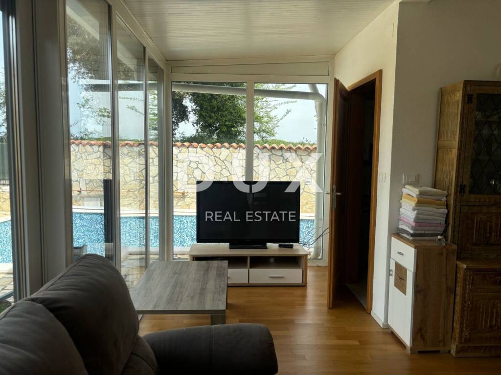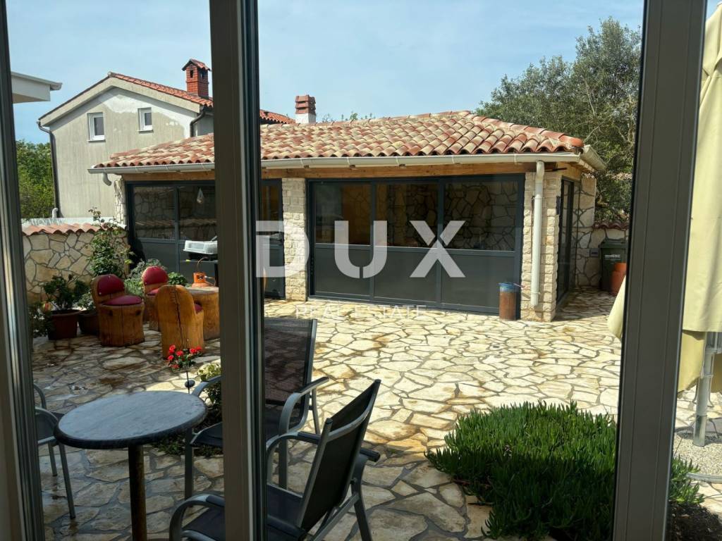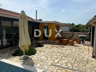 DUX real estate offers a single-storey house in a quiet location in Medulin. This house offers you 80 m2 of interior space and a 20 m2 tavern next to the yard and pool! The main part of the house consists of an entrance area, a living room with a kitchen and dining room, two bedrooms and a bathroom. Large glass walls from the living room overlook the yard with a tavern and the pool. Three air conditioners are installed for heating and cooling, and there is a wood-burning stove for the atmosphere in the living room! There is also a storage room and a machine room next to the pool. It is being sold furnished. The specialty of this property is the tavern - an authentic space that exudes Istrian charm. Perfect for socializing, dinners with wine, or simply as an escape from everyday life. This single-storey house offers a combination of comfort, privacy and traditional spirit! For all additional information and viewing, feel free to contact me!