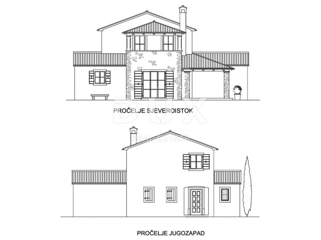 U mirnom i zelenilom okruženom istarskom selu, nudimo građevinsko zemljište površine 841 m s pravomoćnom građevinskom dozvolom za izgradnju luksuzne rustikalne vile koja spaja autentični mediteranski ugođaj s modernim komforom.