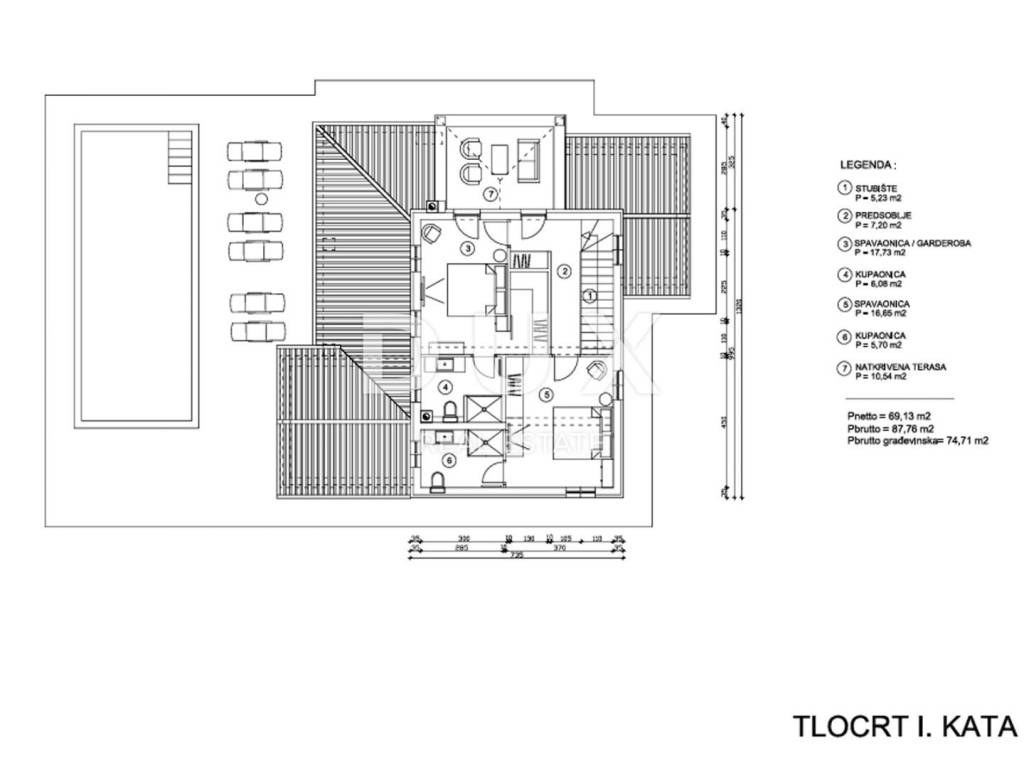 Prema projektu, budući objekt imat će 193 m stambenog prostora (netto), raspoređenih na dvije etaže, te dodatni bazen površine 38 m, idealan za obiteljski život ili ulaganje u turistički najam.