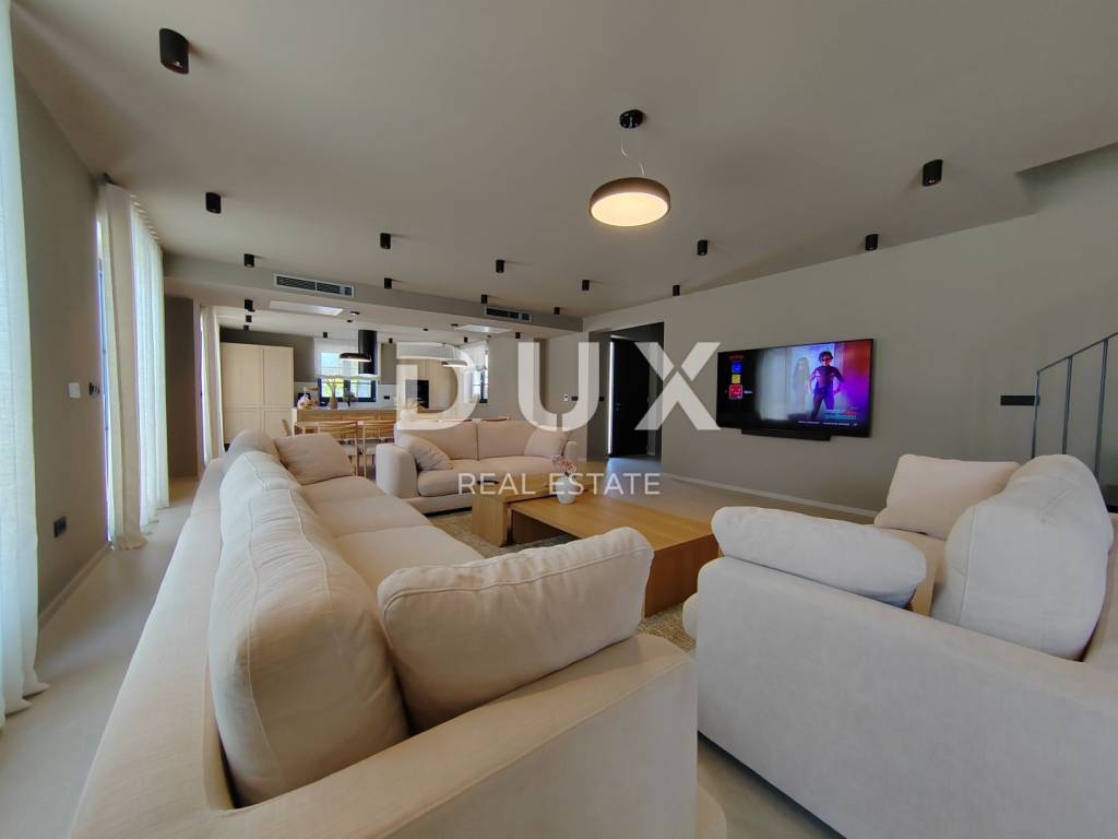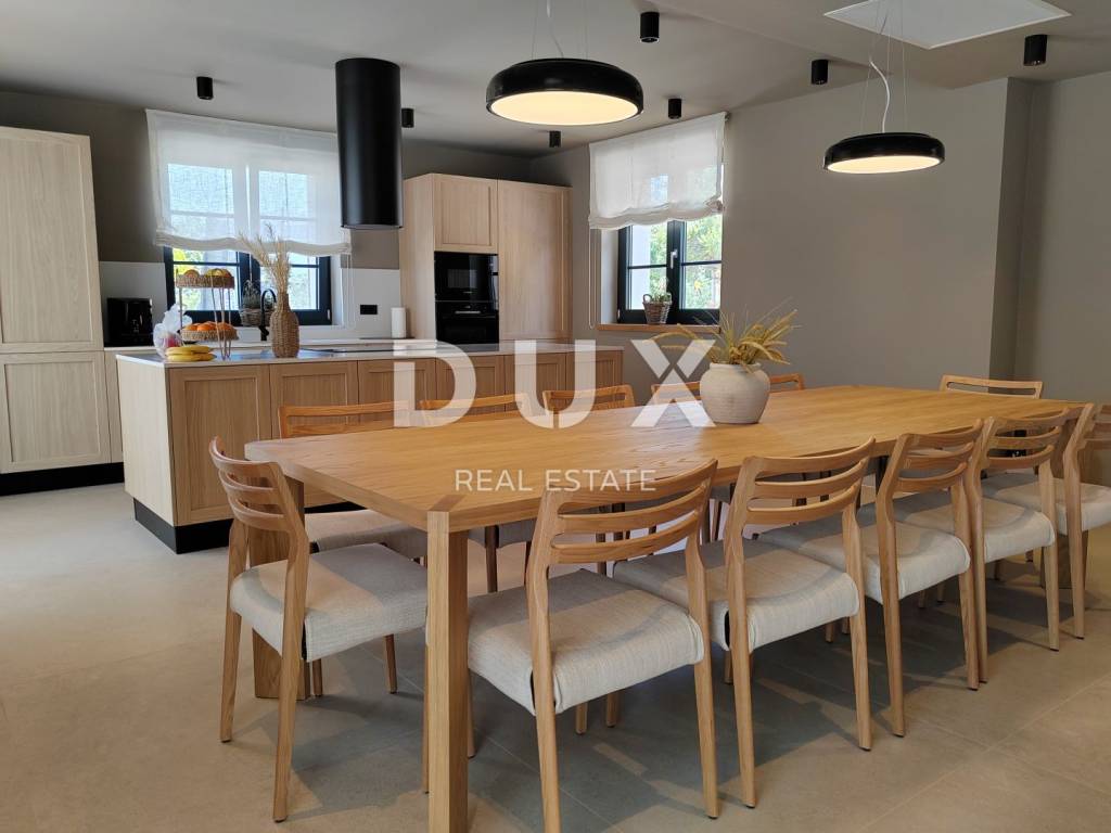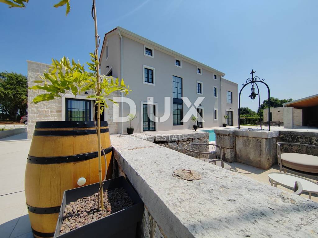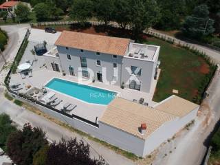 Poreč is located on the west coast of the Istrian peninsula. Due to its Mediterranean climate, natural beauty and preserved cultural heritage, it is an ideal place to stay all year round. The city is home to 53 surrounding settlements where modern villas with swimming pools and apartment complexes are located. On the site of a former traditional house, this brand new villa was built, which represents the perfect combination of top luxury and historical charm. Located in a quiet village just 10 minutes drive from the sea, the villa covers an impressive 320 m of usable area, with an additional 70 m building that serves as an outdoor kitchen, ideal for outdoor gatherings. The villa is located on a large green garden of approximately 2000 m2 that provides a complete sense of privacy. It features old oak trees, Mediterranean plants and a heated area of 67m2, surrounded by a sunbathing area and Mediterranean plants with details of an old well that is a witness to a rich history. The interior of the villa is decorated to the highest standards: 5 bedrooms, each with its own bathroom and dressing room, provide maximum comfort for family and guests. The Italian kitchen equipped with top-of-the-line appliances fits perfectly into the sophisticated design of the space. Underfloor heating ensures a pleasant stay throughout the year, while air conditioning provides refreshment in the summer months. The ground floor includes a spacious open layout with a living room with dining area, a fully equipped kitchen, a bedroom with en-suite bathroom and dressing room, a technical room and a guest toilet. On the first floor there are three bedrooms with their own bathrooms and a luxurious terrace with panoramic views of the surroundings and the sea. Large glass surfaces throughout the property ensure unobstructed views and natural light. The attic is reserved for the master bedroom with a separate living area and a terrace with a hydromassage tub - the perfect place to relax with the best view. It also has its own bathroom. This spectacular villa is not just a home - it is a way of life. The combination of historical details and the most modern amenities makes it a unique property on the market. It is ideal for family life or a luxurious vacation near the sea, offering privacy, comfort and unforgettable panoramic views.