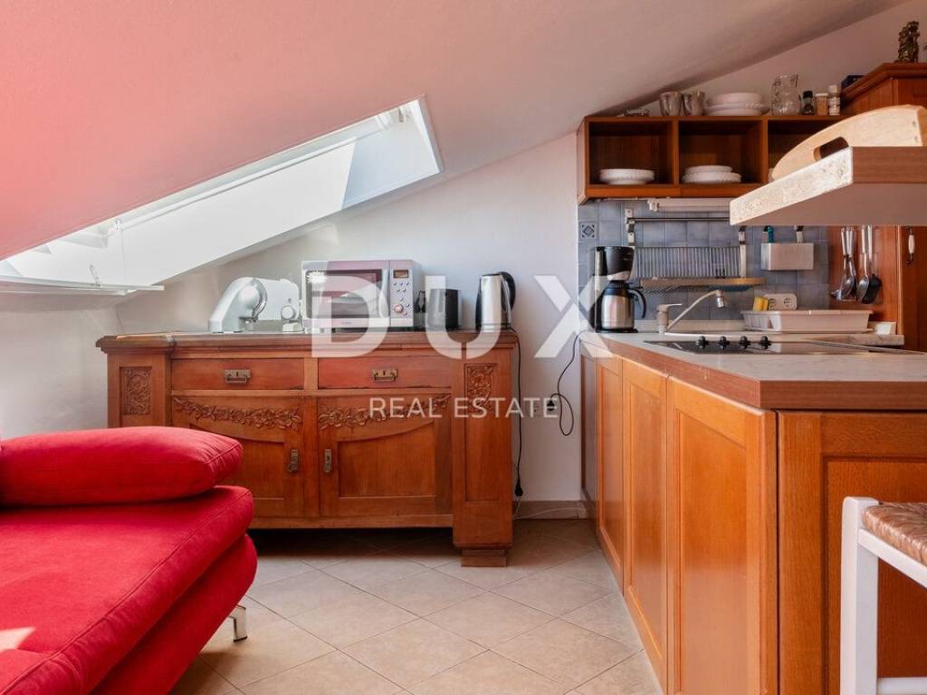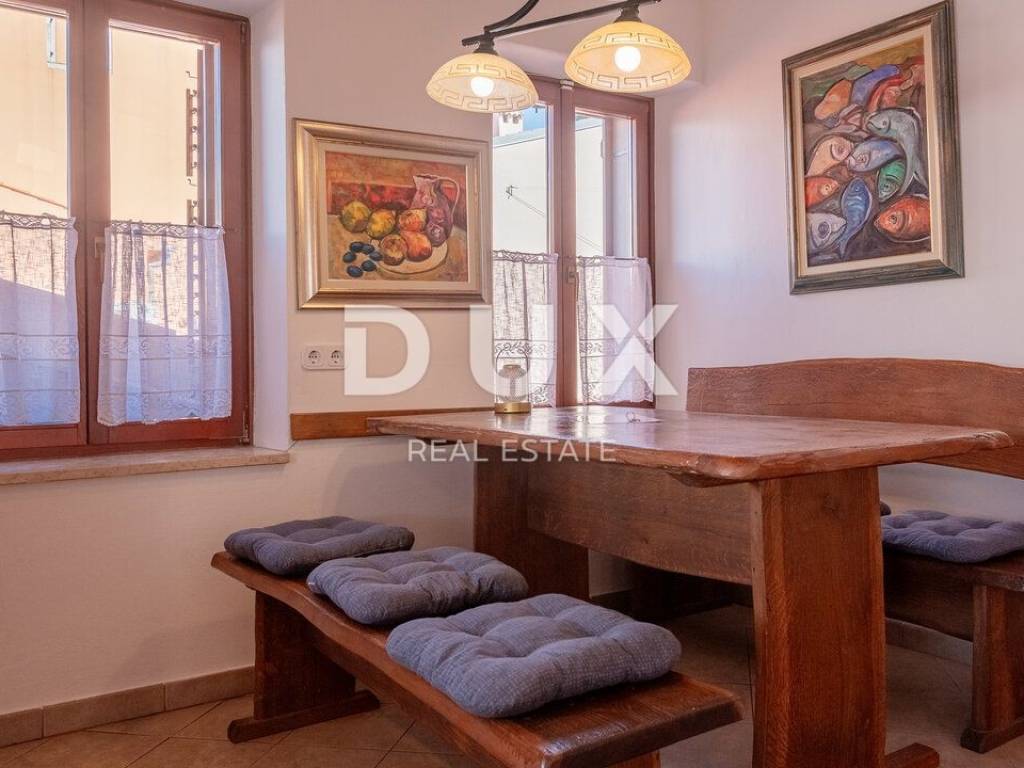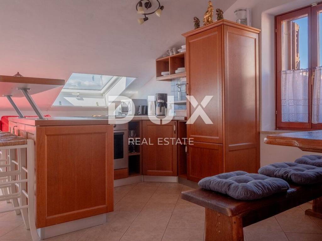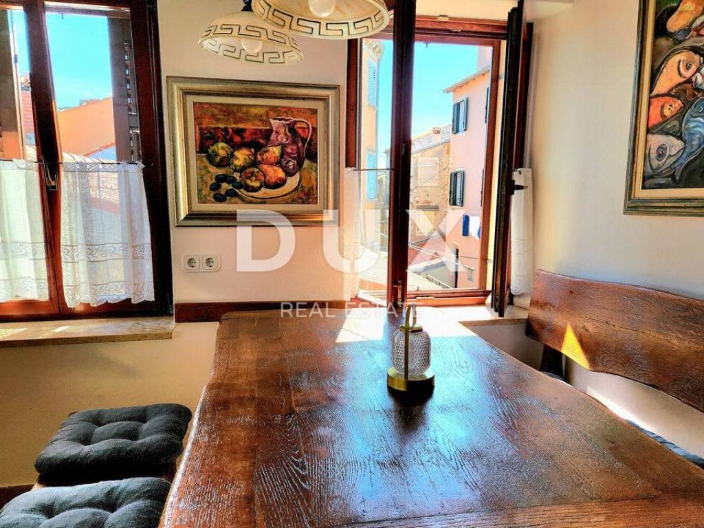 We proudly present this superb opportunity for all those who are looking for a unique property. This is an apartment located in one of the most exclusive locations in the unmissable town of Rovinj. What sets this apartment apart from all the others is its exclusive location, which offers its future visitors an almost private beach in the very center of the town and a beautiful furnished terrace in the Mediterranean sun. Take advantage of this opportunity, make your dream come true and become the proud owner of one of the rarely available properties on our market. APARTMENT DESCRIPTION: The apartment consists of 63m2 of living space, and is located in a completely renovated stone building. Upon entering the building, you will be greeted by a spacious lobby and a furnished staircase that leads to the apartment, which is located on the 2nd floor. The wide and well-maintained staircase is decorated with stone details, and there are also common areas that are used as storage for bicycles and scooters. Thus, upon entering the apartment, we find ourselves in a lobby with a designated area for a wardrobe, which then introduces us to the living area of the apartment, designed according to the "open space" system without partition walls. In the same area, you have the opportunity to spend your time in a comfortable living room, where a more modern kitchen and a comfortable dining room are located. What adorns this area of the apartment are the skylights, with the help of which a rich amount of natural daylight penetrates the apartment, and which also serve as a perfect place for drinking morning coffee or an evening glass of wine with an open view of the sea and the landscape. In addition, the apartment consists of a well-maintained bathroom with a shower cabin, a guest toilet, and two separate spacious bedrooms. The same atmosphere moves from the living area to the bedrooms with the help of larger windows. which also represents a perfect place for relaxation in the same incredible view of the sea. As we mentioned at the beginning of the ad, this apartment has the right to use the shared terrace of the building. Given that the apartment is located first row to the sea, the building has a shared furnished terrace with private access to the sea, which is an ideal place for relaxation and fun with your loved ones. Here you have the opportunity, in addition to swimming in the Adriatic Sea, to spend your time on a deck chair with a cold cocktail and your favorite book. ADDITIONAL INFORMATION: The entire object/building was renovated by the owner, including the apartment itself. During the renovation, the facade of the object, the roof, all installations in the building and the apartment, the staircase in the building with a wide tread, the mezzanine structure, which is now concrete, as well as the insulation between the apartments were renovated. * The apartment is being sold furnished, as can be seen in the pictures. * The apartment has two air conditioners, one in the living room and the other in the bedroom. * The entire object and apartment have been renovated. * High-quality sound insulation has been installed between the apartments. * High-quality PVC and wooden joinery has been installed. * There is a possibility of purchasing two additional apartments of 63m2 each in the same building on the same floor. For any additional questions, necessary information or if you wish to organize a viewing of the apartment and its location, please feel free to contact us at any time.