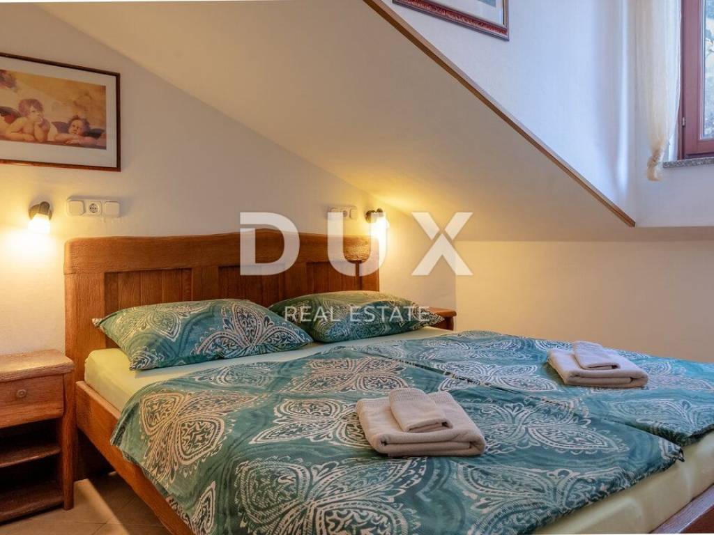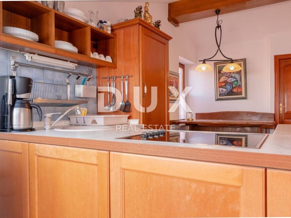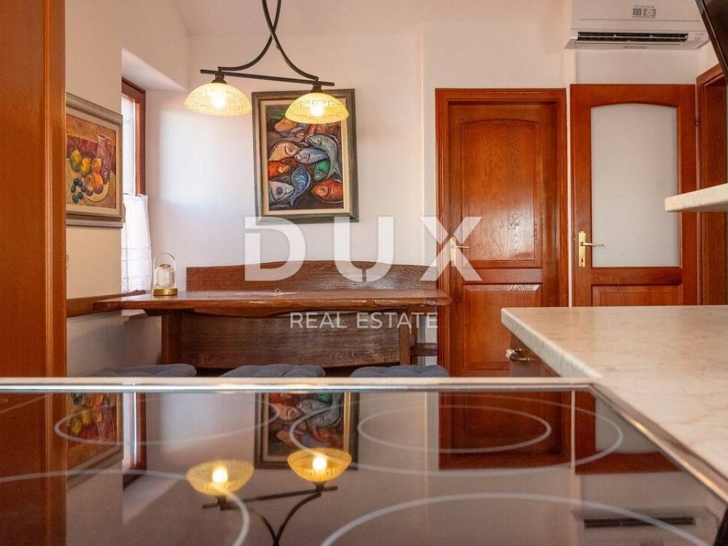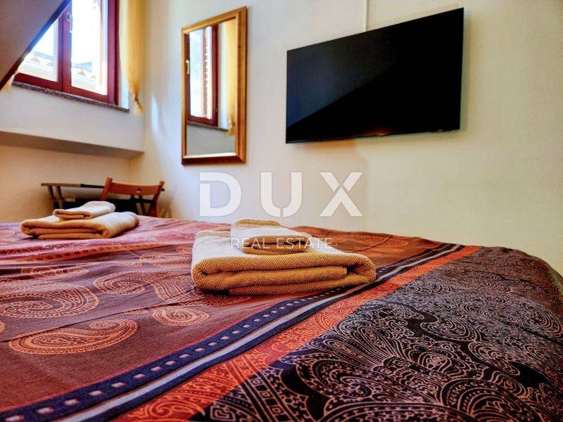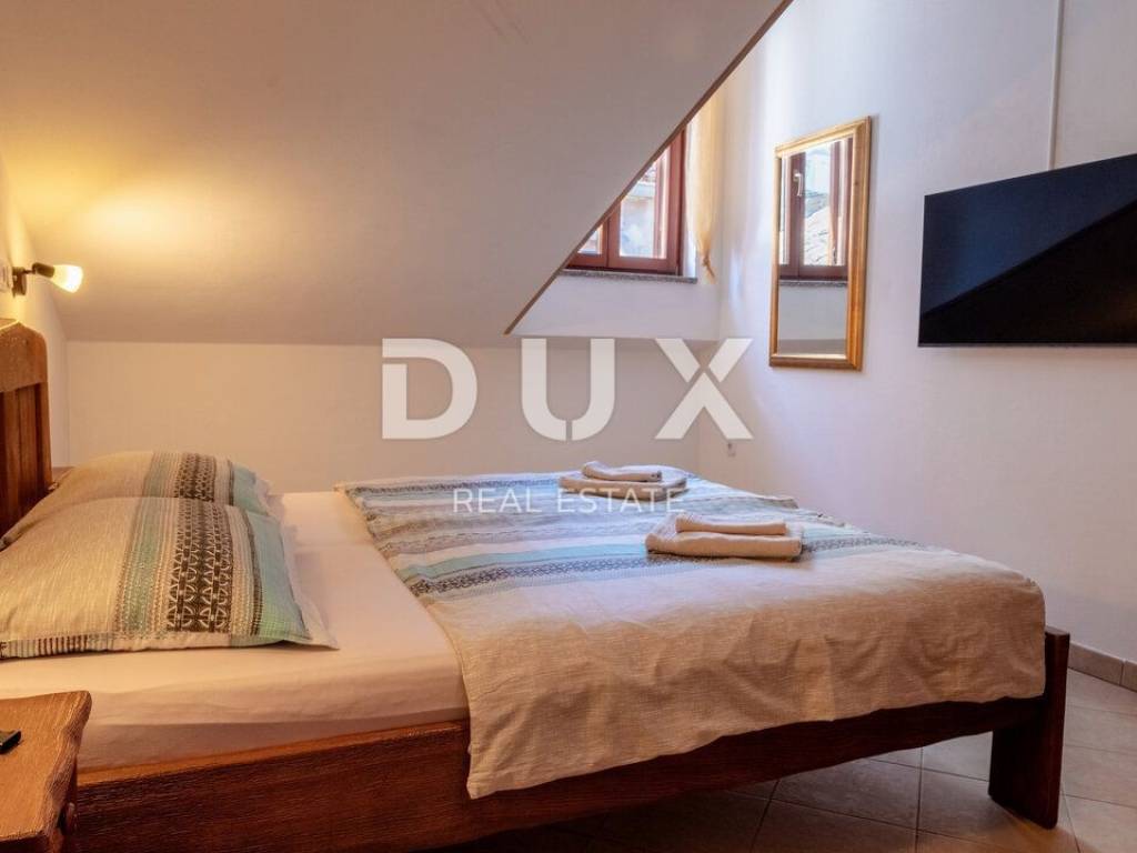 We proudly present this superb opportunity for all those who are looking for a unique property. This is an apartment located in one of the most exclusive locations in the unmissable town of Rovinj. What sets this apartment apart from all the others is its exclusive location, which offers its future visitors an almost private beach in the very center of the town and a beautiful furnished terrace in the Mediterranean sun. Take advantage of this opportunity, make your dream come true and become the proud owner of one of the rarely available properties on our market. APARTMENT DESCRIPTION: The apartment consists of 63m2 of living space, and is located in a completely renovated stone building. Upon entering the building, you will be greeted by a spacious lobby and a furnished staircase that leads to the apartment, which is located on the 2nd floor. The wide and well-maintained staircase is decorated with stone details, and there are also common areas that are used as storage for bicycles and scooters. Thus, upon entering the apartment, we find ourselves in a lobby with a designated area for a wardrobe, which then introduces us to the living area of the apartment, designed according to the "open space" system without partition walls. In the same area, you have the opportunity to spend your time in a comfortable living room, where a more modern kitchen and a comfortable dining room are located. What adorns this area of the apartment are the skylights, with the help of which a rich amount of natural daylight penetrates the apartment, and which also serve as a perfect place for drinking morning coffee or an evening glass of wine with an open view of the sea and the landscape. In addition, the apartment consists of a well-maintained bathroom with a shower cabin, a guest toilet, and two separate spacious bedrooms. The same atmosphere moves from the living area to the bedrooms with the help of larger windows. which also represents a perfect place for relaxation in the same incredible view of the sea. As we mentioned at the beginning of the ad, this apartment has the right to use the shared terrace of the building. Given that the apartment is located first row to the sea, the building has a shared furnished terrace with private access to the sea, which is an ideal place for relaxation and fun with your loved ones. Here you have the opportunity, in addition to swimming in the Adriatic Sea, to spend your time on a deck chair with a cold cocktail and your favorite book. ADDITIONAL INFORMATION: The entire object/building was renovated by the owner, including the apartment itself. During the renovation, the facade of the object, the roof, all installations in the building and the apartment, the staircase in the building with a wide tread, the mezzanine structure, which is now concrete, as well as the insulation between the apartments were renovated. * The apartment is being sold furnished, as can be seen in the pictures. * The apartment has two air conditioners, one in the living room and the other in the bedroom. * The entire object and apartment have been renovated. * High-quality sound insulation has been installed between the apartments. * High-quality PVC and wooden joinery has been installed. * There is a possibility of purchasing two additional apartments of 63m2 each in the same building on the same floor. For any additional questions, necessary information or if you wish to organize a viewing of the apartment and its location, please feel free to contact us at any time.