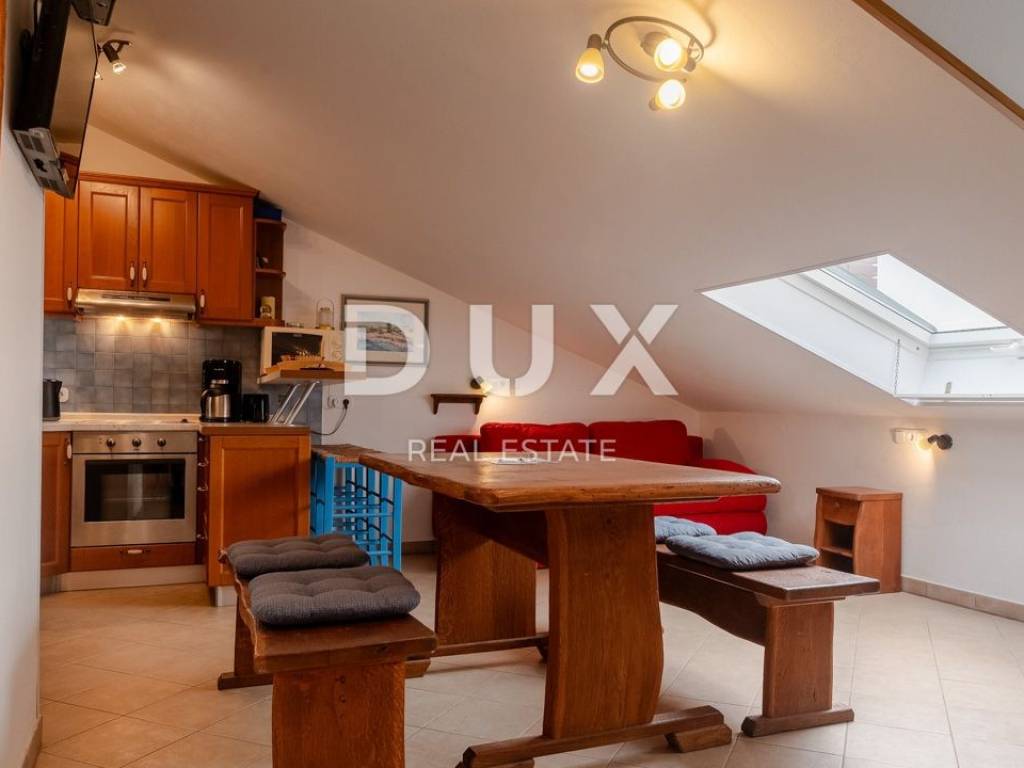 We proudly present this superb opportunity for all those who are looking for a unique property. This is an apartment located in one of the most exclusive locations in the unmissable town of Rovinj. What sets this apartment apart from all the others is its exclusive location, which offers its future visitors an almost private beach in the very center of the town and a beautiful furnished terrace in the Mediterranean sun. Take advantage of this opportunity, make your dream come true and become the proud owner of one of the rarely available properties on our market. APARTMENT DESCRIPTION: The apartment consists of 47m2 of living space, and is located in a completely renovated stone building. Upon entering the building, you will be greeted by a spacious lobby and a furnished staircase that leads to the apartment, which is located on the 2nd floor. The wide and well-maintained staircase is decorated with stone details, and there are also common areas that are used as storage for bicycles and scooters. Thus, upon entering the apartment, we find ourselves in a small lobby that immediately introduces us to the living area of the apartment, designed according to the "open space" system without partition walls. In the same space, you have the opportunity to spend your time in a comfortable living room, where a more modern kitchen and dining room are also located. What adorns this area of the apartment are the skylights, with the help of which a rich amount of natural daylight penetrates the apartment, and which also serve as a perfect place for drinking morning coffee or an evening glass of wine with an open view of the sea and the landscape. In addition, the apartment consists of a well-maintained bathroom with a shower cabin, and a separate and more spacious bedroom. The same atmosphere moves from the living area to the bedroom with the help of a larger skylight. which also represents a perfect place for relaxation in the same incredible view of the sea. As we mentioned at the beginning of the ad, this apartment has the right to use the shared terrace of the building. Given that the apartment is located first row to the sea, the building has a shared furnished terrace with private access to the sea, which is an ideal place for relaxation and fun with your loved ones. Here you have the opportunity, in addition to swimming in the Adriatic Sea, to spend your time on a deck chair with a cold cocktail and your favorite book. ADDITIONAL INFORMATION: The entire object/building was renovated by the owner, including the apartment itself. During the renovation, the facade of the object, the roof, all installations in the building and the apartment, the staircase in the building with a wide tread, the mezzanine structure, which is now concrete, as well as the insulation between the apartments were renovated. * The apartment is being sold furnished, as can be seen in the pictures. * The apartment has two air conditioners, one in the living room and the other in the bedroom. * The entire object and apartment have been renovated. * High-quality sound insulation has been installed between the apartments. * High-quality PVC and wooden joinery has been installed. * There is a possibility of purchasing two additional apartments of 63m2 each in the same building on the same floor. For any additional questions, necessary information or if you wish to organize a viewing of the apartment and its location, please feel free to contact us at any time.