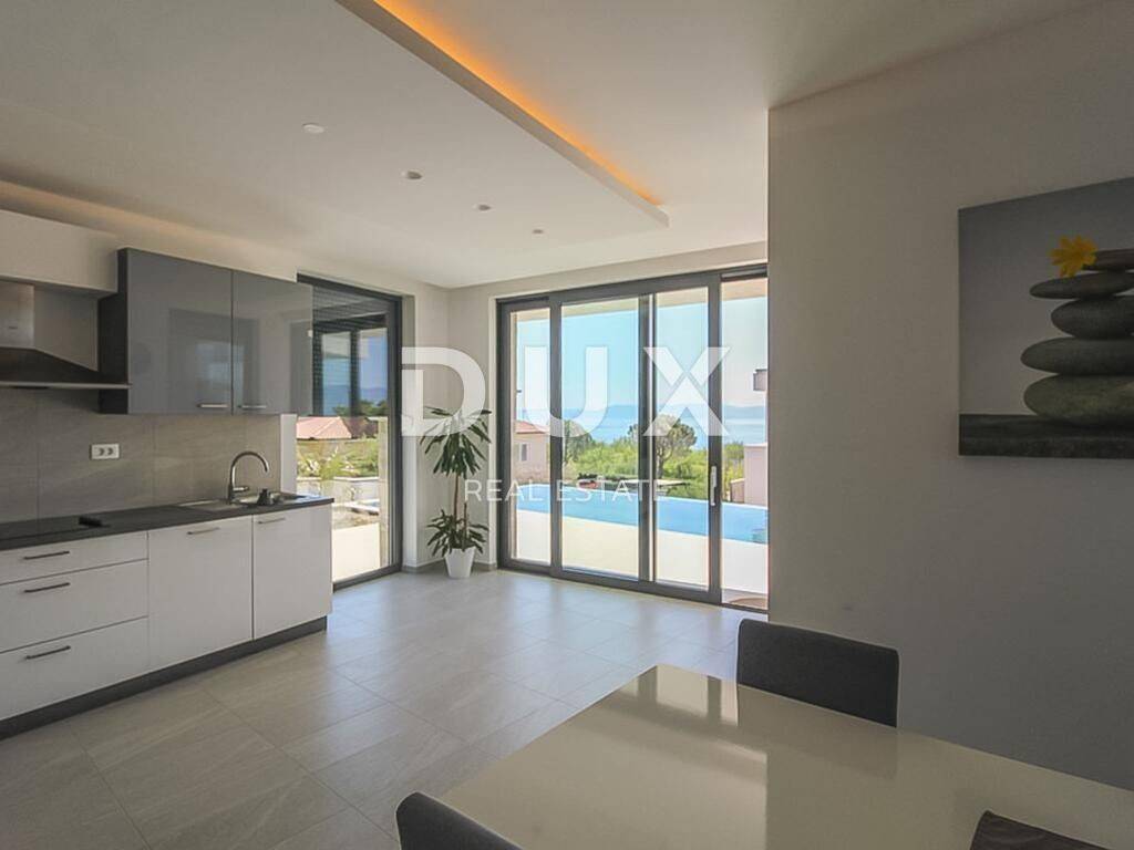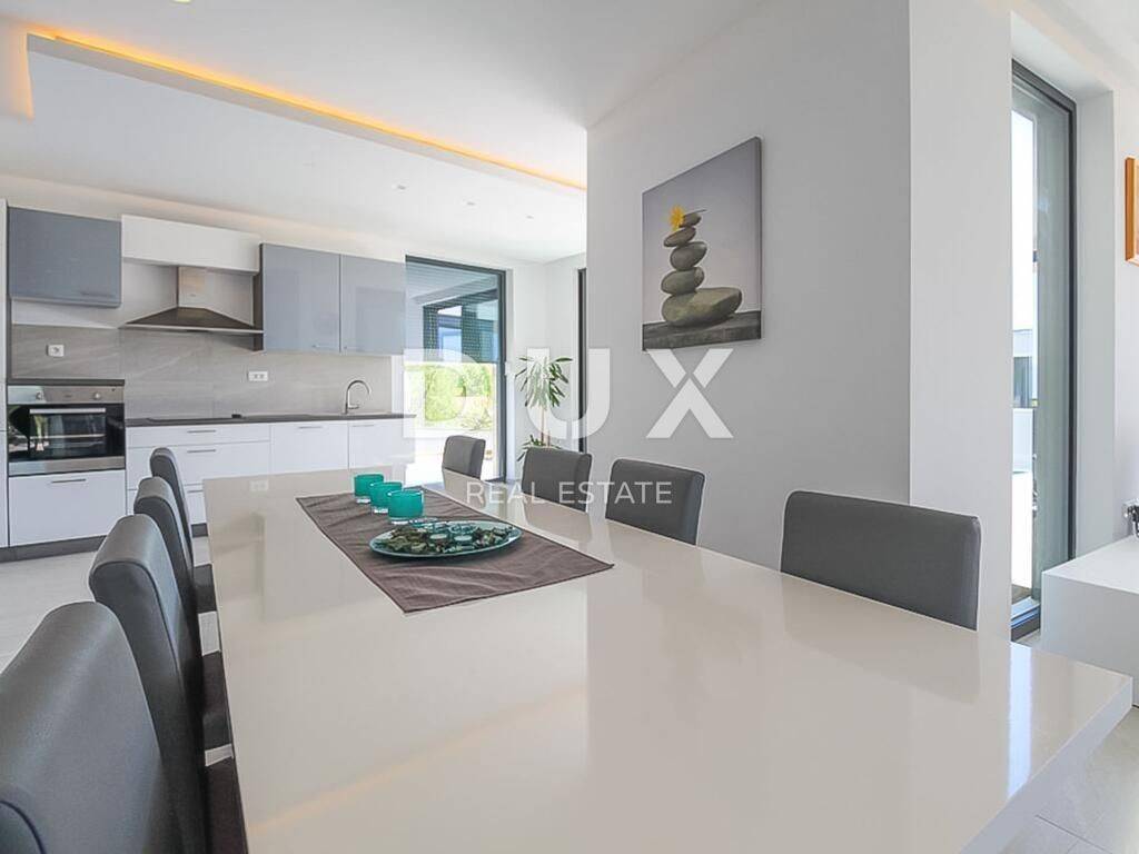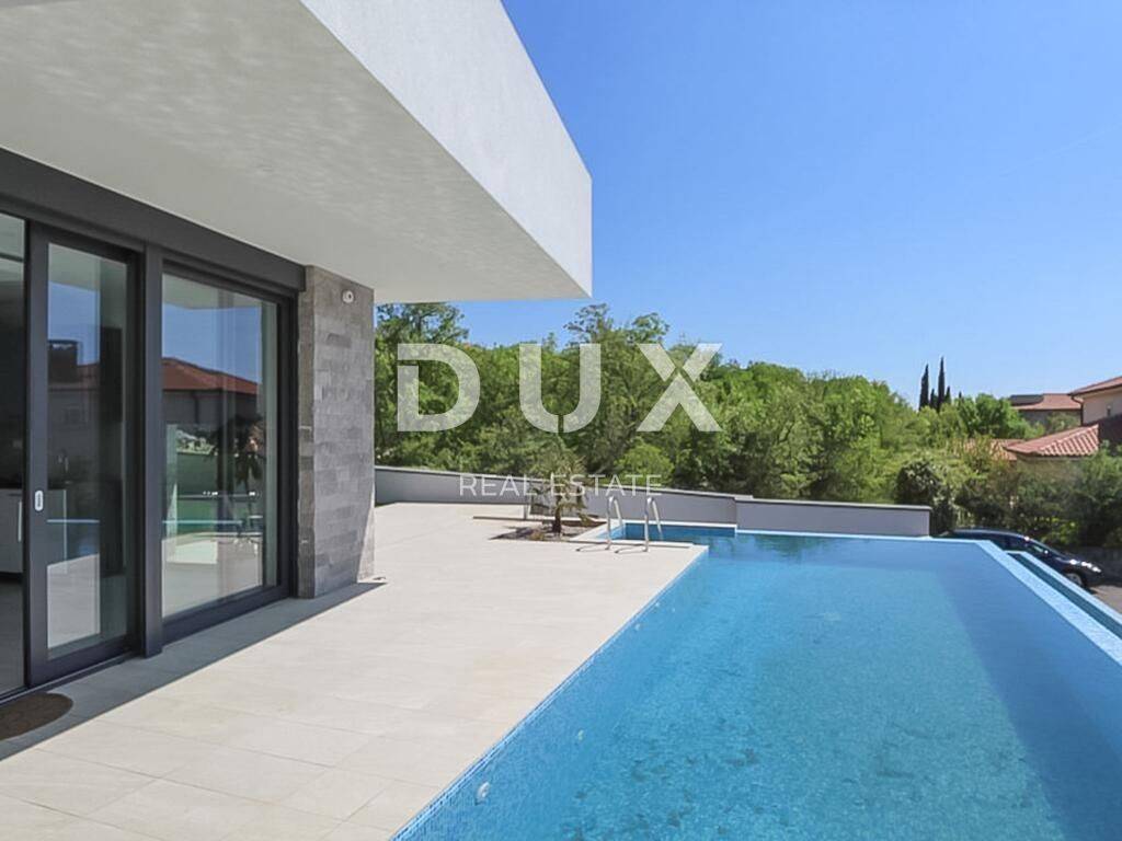 Kostrena is an old popular seaside town, first mentioned in the early 15th century. It is divided into two parts, St. Lucia and St. Barbara, according to the names of two churches that exist in its area. Kostrena is located in the immediate vicinity of the city of Rijeka, framed by the Martinšćica Bay and the Bakar Bay. Our Kostrena peninsula is about 10 kilometers long and gently slopes towards the sea coast. Along its entire length, there are beautiful beaches that are visited by thousands of swimmers during the summer. The most famous and most visited are those in the Žurkovo Bay, then Smokvinovo, Svežanj, Spužvina, Podražica, Nova voda and Perilo. A characteristic karst area with Mediterranean plants and the famous Kostrena gromača, and a mild climate that sometimes gives way to strong gusts of the bora wind, are the characteristics of this area. We offer for sale an exclusive, detached, modern villa located in a fashionable part of Kostrena, close to the sea. This exceptional property consists of three residential or apartment units, depending on whether it is used for living or tourism. The rooms of the two residential units can easily be converted into fitness rooms, study rooms, etc. and attached to the apartment. The central residential unit is a two-story apartment with a large living room with an open-plan kitchen and dining room. The living room communicates wonderfully with the beautiful south-facing terrace, where the beautiful infinity pool with sunbathing areas stands out. From the living room, stairs lead up to the first floor where there are four bedrooms, two bathrooms, a laundry room and a drying room. On the ground floor of the villa we also have a studio apartment with a separate entrance, a separate kitchen and dining room, a bathroom and two smaller terraces. On the first floor there is a third residential unit, which you reach by a separate staircase and here we have a living room with an open kitchen and dining room and a room with its own bathroom. Daylight penetrates through the balcony doors and creates an airy atmosphere. A cozy bedroom with a double bed and a bathroom complete the apartment. All rooms in the villa have their own air conditioning for heating and cooling, and there is underfloor heating in the bathrooms and living areas. It is also important to note that the roof is walkable if someone wants to use it. In addition to these three apartments, in the basement of the villa we have a large garage, a children's playroom and another bathroom and a machine room for the pool. Next to the machine room for the pool in the basement (it is not a basement but above ground) is another machine room with a water tank for solar heating of hot water. In addition to residential purposes, the villa can also be used for tourist rental, for two or more families. A UNIQUE PROPERTY WORTH ATTENTION IN A GREAT LOCATION!!!