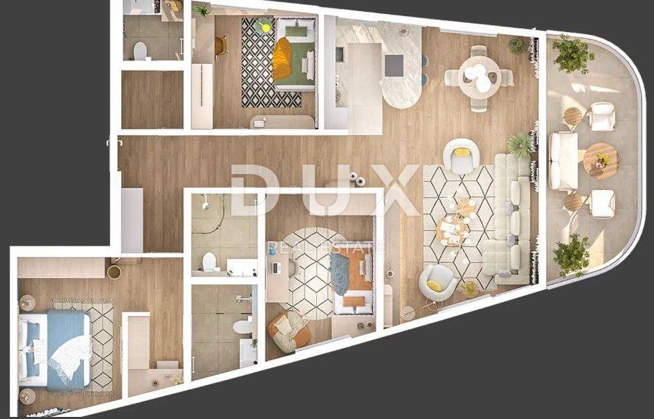 For sale is an exceptionally spacious and well-designed apartment located on the second floor of a luxury new building in Kantrida - 3rd row to the sea, just a 5-minute walk from the beach and a 10-minute drive to Opatija. A quiet location, open sea view and top-quality construction make this property an ideal choice for family life or a safe investment. The apartment (S17) with a total area of 123.90 m consists of: entrance hall (12.14 m), kitchen, dining room and living room in an open concept (39.00 m), exit to a balcony of 15.67 m with a beautiful sea view, three bedrooms, including the master bedroom (18.09 m) with its own bathroom (4.45 m), and two additional bedrooms (12.85 m and 11.73 m), another bathroom (4.20 m). The apartment comes with: two garage parking spaces (no. 67 12.78 m and no. 68 12.50 m), storage room (no. 29 2.71 m).