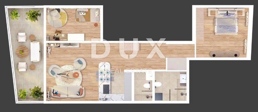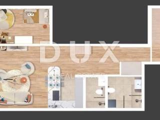 For sale is a modern apartment in a luxury new building in Kantrida, located on the second floor of a building in the third row to the sea, just a few minutes walk from the beach and the city center of Rijeka. The apartment (S13) with a total area of 92.15 m consists of: entrance hall (10.30 m), open-concept kitchen, dining room and living room (28.47 m) with access to a large balcony of 17.62 m with a beautiful sea view, two bedrooms, including the master bedroom (15.71 m) with its own bathroom (5.71 m), second bedroom (11.19 m), additional bathroom (3.15 m). The apartment comes with: garage parking space (no. 41 12.40 m), storage room (no. 14 3.21 m).