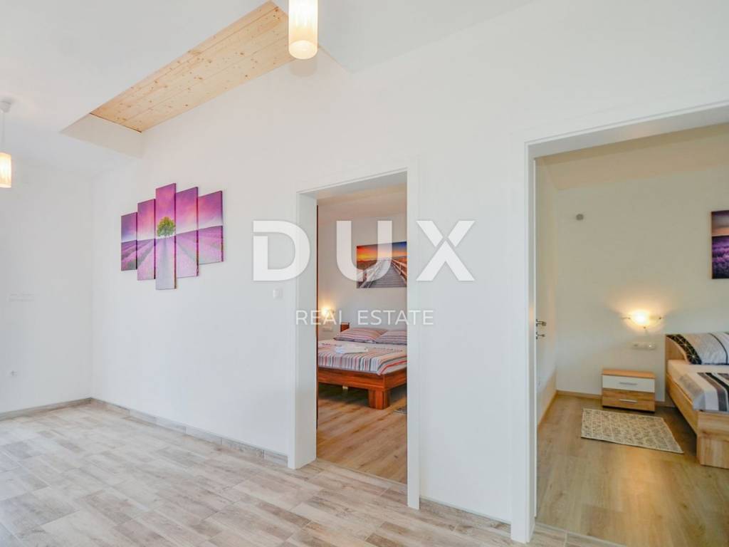 We present this quality family apartment, located on the 1st floor of a condominium, which also has a private yard, as well as an additional building located on the aforementioned plot of land. This is a property built exclusively for the private needs of the owner and is located in an ideal location close to all the amenities needed for everyday life. APARTMENT DESCRIPTION: The apartment is located on the 1st floor, and consists of a total of 150m2 of living space. Upon entering the apartment, there is a lobby with a designated space for a wardrobe, which then turns into a hallway that connects all the rooms of the apartment. Thus, approaching the living area of the apartment, designed according to the "open space" system without partition walls, we find ourselves in a modern and equipped kitchen with an island, perfect for preparing your favorite delicacies. Next to the kitchen is a dining room large enough for the whole family, as well as a spacious living room from which, with the help of a sliding glass wall, you can access the covered balcony that stretches the entire length of the apartment, and it is the perfect place to rest and relax with a glass of your favorite wine. In addition, the apartment on the first floor consists of 2 large bedrooms and a spacious bathroom. By accessing the second floor of the apartment, or the attic, we find a space where an additional 2 to 3 comfortable bedrooms can be accommodated. The attic space can be arranged according to the wishes of the future owners, so for example, instead of additional bedrooms, the same space can be used so that there is an additional residential unit with one bedroom, then a large living room and an additional bathroom. The attic offers an open view of the sea and the Medulin Bay. DESCRIPTION OF THE GARDEN: This apartment also has a separate outbuilding that is currently used as a garage, with a total area of 93 m2, and there is also a total of 177 m2 of the apartment's private yard. In the same yard, it is possible to build a swimming pool, according to the wishes of the future owners, and the existing building can be converted into an additional separate residential unit, which could then serve as a small holiday home, tavern, storage room, etc. This apartment also has two parking spaces in the common part of the yard. ADDITIONAL INFORMATION: * The property is being sold furnished as shown in the pictures. * The apartment has air conditioning for heating and cooling, as well as a chimney with the option of installing a pellet or wood stove. * Given that the property was built for the private needs of the owner, attention was paid to every detail during construction. * High-quality facade and roof insulation has been installed, which makes staying in the property more pleasant throughout the year. * The property is in good order, and purchases on credit are possible. * Large and private yard * An auxiliary building in the yard of the apartment, which can serve as a perfect tavern or as an additional smaller house. LOCATION DESCRIPTION: The property is located in the picturesque fishing village of Ližnjan, known for its peaceful nature, without crowds or noise, an ideal and safe place for a peaceful and harmonious family life. Beautiful untouched beaches with crystal clear sea and views of the Kvarner archipelago leave no one indifferent, numerous promenades and bicycle paths attract a large number of families to socialize in the fresh air in nature. In addition to all the above, just a few steps from the property there are shops, famous and respected restaurants, cafes, bakeries, schools, kindergartens and doctors, which makes life in Ližnjan significantly easier. In addition, the city of Pula, as the largest city on the Istrian peninsula, is only 18 minutes away by easy drive, and the nearest significant center is Medulin, which is only 4 minutes away by car, while Pula Airport is only 15 minutes away by car. For any additional questions, necessary information or if you wish to organize a property viewing appointment, please feel free to contact us.