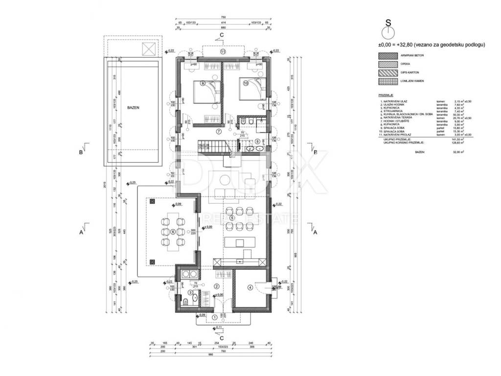 Novigrad, once a quiet fishing village, has over the years become an attractive destination for tourists from all over Europe and the world, many of whom return regularly. Becoming one of the most desirable places for tourist stays and holidays, Novigrad has preserved its irresistible charm of a quiet fishing town, that recognizable, almost intimate atmosphere, so characteristic of small Mediterranean towns. The Novigrad Riviera on the western coast of Istria stretches from Dajla to the mouth of the Mirna River, and is adorned with an indented, low and accessible coast of rocky and pebble beaches. Not far from the town of Novigrad, a comfortable house with a swimming pool near the sea is for sale. In addition to the microlocation, the property is also characterized by the quality of construction, which guarantees long-term satisfaction and quality of living. The house of timeless design fits into the settlement and landscape in terms of form and color. It is conceived as one residential unit that extends over two floors. The ground floor consists of an open-concept space that unites the kitchen, dining room and living room with access to a covered terrace, two bedrooms, a bathroom, a guest toilet and a technical room, while the first floor consists of two bedrooms with private bathrooms. The yard is landscaped and horticulturally decorated and fenced and contains a swimming pool with a sunbathing area. The excellent location and spatial organization of the interior and exterior of this property provide an opportunity for a comfortable family life or an investment in a tourist rental business. The stated price of the property refers to the final level of completion without furniture, which allows for the final arrangement according to your own wishes and preferences.
