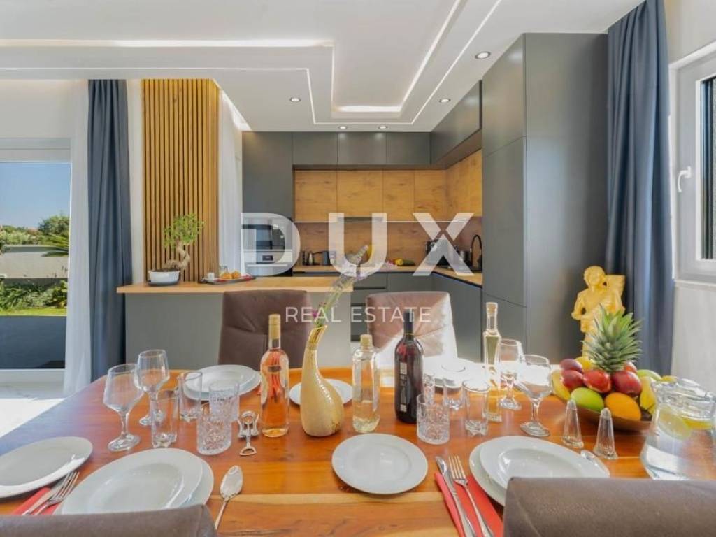 We proudly present this first-class and highly luxurious villa located in an attractive location just 300m from the beaches and close to all necessary amenities. This is a luxury villa that perfectly combines modern design with a high level of comfort. The villa is equipped with the highest quality materials and the most modern technological solutions in order to ensure a high level of luxury, convenience and comfort, which makes it an extraordinary property for year-round living and vacation. Take this opportunity and become the owner of this almost perfect villa, which will enchant you upon arrival. VILLA DESCRIPTION: In addition to the numerous quality elements of this villa that we would like to highlight, it is important for us to mention that the villa consists of a total of 175m2 of living space, and spreads over two floors, ground floor and first floor. The ground floor of the villa features an entrance hall with a designated space for a wardrobe, which then leads us into an extravagant living area, designed according to the "open space" system, without partition walls. Here you have the opportunity to spend your time in the spacious living room that occupies the central part of the ground floor, which is perfect for relaxing after an active day, and for socializing with friends and family. Directly connected to the living room are a spacious dining room, large enough for the whole family, and a modern and superbly equipped kitchen with an island. What adorns the ground floor of the villa are the generous sliding glass walls, which uncompromisingly connect the interior of the villa with the outdoor courtyard. This creates a feeling of infinity in the communication between the interior of the villa and the landscaped garden. Thus, with direct access from the living room, you can access the covered terraces and the swimming pool with a beach and a sunbathing area. An internal staircase leads to the upper floor of the villa, where there are three luxurious and spacious bedrooms, each with its own bathroom and direct access to a covered terrace. The same terrace offers a view of the sea and the sunset, making it ideal for sipping a glass of your favorite wine at the end of an active and busy day. DESCRIPTION OF THE GARDEN: The same level of attention to quality and design is dedicated to the exterior of the villa. Thus, upon approaching the fenced garden from the asphalt road with the help of an electric gate, you are greeted by parking for 3 cars, which can be covered according to the wishes or needs of the future owners. The main part of the garden is hidden from view, all in order to ensure the maximum level of privacy and peace. In this part of the garden you have the opportunity to swim in a heated 6mX3m (18m2) swimming pool with a water electrolysis system (salt water). Next to the pool there is a sunbathing area and a beach. Next to the pool is the already mentioned summer covered terrace, as well as an additional terrace with a summer kitchen and barbecue, which is an ideal place for relaxation and fun with friends and family. We must definitely point out that the villa's courtyard is decorated with numerous Mediterranean plants that provide a special atmosphere during your stay in the open air. This way, you have the opportunity to enjoy the view of 120-year-old olive trees and numerous palm trees. The greenery is taken care of by an automatic irrigation system for easier maintenance. As additional contents of the courtyard, there are also: an outdoor shower, a storage room under the stairs, as well as an outdoor storage room for the boiler and heat pump. ADDITIONAL INFORMATION: * The ownership of the villa is neat, 1/1 owner, no encumbrances. * The villa is sold furnished as seen in the pictures. * The furniture in the villa was custom-made exclusively for this villa, with attention to every detail. * Each room in the villa has air conditioning, and each space has its own TV, including the kitchen. * Underfloor heating has been installed in all rooms of the villa. * The villa is equipped with electric shutters and mosquito nets on all windows and doors. * For security and privacy, a high-quality video surveillance and alarm system with sensors have been installed. * The transformer station has already been installed and connected, and the occupancy permit is expected by May 2025. LOCATION DESCRIPTION: The villa is located in one of the most sought-after parts of the town of Medulin. This is a location that makes your stay particularly pleasant and unique, and in addition to the beauty of the villa itself and its location, an additional reason for this is that it is surrounded by similar valuable properties, which makes its location even more luxurious. In addition, the villa is only 300m from the first beach, and future owners have the opportunity to choose other beaches that Medulin is famous for, which are only a 4-minute easy car or bike ride from the villa. If you are looking for a property that will represent an ideal home for your family or an ideal investment opportunity, this villa is the right choice for you. All the necessary amenities are just a few short minutes' drive from the villa, with the first shops just a 2-minute drive away, numerous restaurants and cafes a 3-minute drive away, a safe marina for private boats just a 4-minute drive away, and many other elements essential to today's modern family. In short, this villa represents the ideal combination of luxury and convenience, as well as the ideal combination of a perfect family home and a property that uncompromisingly fits into real estate with the aim of developing luxury tourism, all with an almost guaranteed return on investment. For any additional questions, necessary information or if you wish to organize a viewing of the villa and its location, please feel free to contact us at any time.