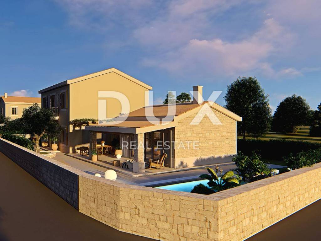 Novigrad, once a quiet fishing village, has over the years become an attractive destination for tourists from all over Europe and the world, many of whom return regularly. Becoming one of the most desirable places for tourist stays and holidays, Novigrad has preserved its irresistible charm of a quiet fishing town, that recognizable, almost intimate atmosphere, so characteristic of small Mediterranean towns. The Novigrad Riviera on the western coast of Istria stretches from Dajla to the mouth of the Mirna River, and is adorned with an indented, low and accessible coast of rocky and pebble beaches. Not far from the town of Novigrad, a house with a swimming pool near the sea is for sale. In addition to the microlocation, the property is also characterized by the quality of construction, which guarantees long-term satisfaction and quality of living. The house of timeless design fits into the settlement and landscape in terms of form and color. It is conceived as one residential unit that extends over two floors. The ground floor consists of an open-concept space that unites the kitchen, dining room and living room with access to a covered terrace, bathroom, storage room and technical rooms, while the first floor consists of three bedrooms with private bathrooms. The yard is landscaped and horticulturally decorated and fenced and contains a swimming pool with a sunbathing area. The excellent location and spatial organization of the interior and exterior of this property provides an opportunity for a comfortable family life or an investment in a tourist rental business. The stated price of the property refers to the final level of completion without furniture, which allows for final decoration according to your own wishes and preferences.