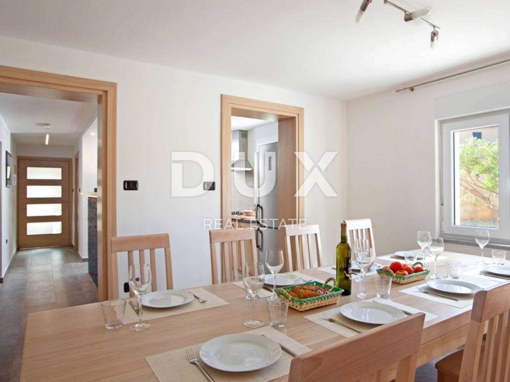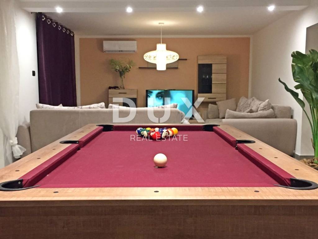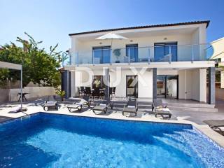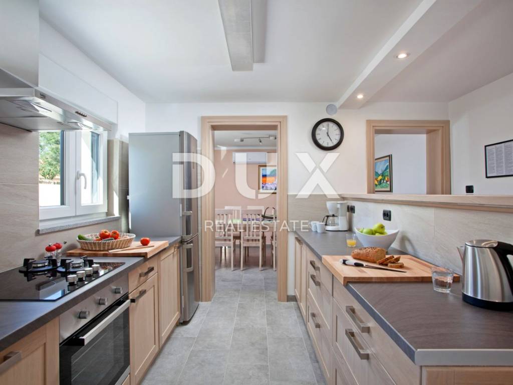 At the southernmost point of the Istrian peninsula is located the coastal jewel - the town of Medulin, one of the most famous representatives of Istrian tourism. It is the center of the popular Medulin Riviera, built on the remains of prehistoric settlements, which includes the surrounding very attractive places; Premantura, Pješčana Uvala, Pomer, Vinkuran, Vintijan, Valbonaša and Banjole. This area also boasts the Medulin archipelago with 11 uninhabited islands and islets. The entire idyllic area represents an exceptional, significantly preserved ambient value. This ideal combination of nature and history has not lost its luster for centuries. The reason for this is the mild Mediterranean climate, an imposing nature park, archaeological sites, magical vistas, sandy and white pebble beaches in blue-green bays, pine forests and modern fishing villages full of Istrian tradition, cultural events and a wide range of dynamic activities. In a quiet neighborhood in Medulin, a house with a swimming pool is for sale in an excellent micro-location. In addition to the location, the property is also characterized by the quality of construction, which guarantees long-term satisfaction and quality of living. The house of timeless design fits into the settlement and landscape in terms of form and color. It is conceived as one residential unit that extends over two tastefully decorated floors. The ground floor consists of a kitchen, dining room and living room with a billiard table with access to a covered terrace, bathroom and storage room. The first floor consists of a hallway, four bedrooms, three bathrooms and a terrace. The fenced garden is abundant with greenery and Mediterranean plants and vegetation, and the perfect harmony is rounded off by a swimming pool with a sunbathing area and an auxiliary building with a toilet that serves as a rest room and can be converted into a wellness area. The excellent location and spatial organization of the interior and exterior of this property provide an opportunity for a comfortable family life or an investment in a tourist rental business.