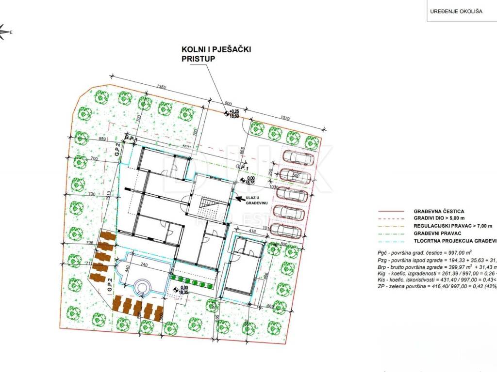 ZP - zelena površina = 416,40/ 997,00 = 0,42 (42%)