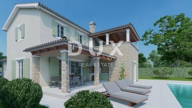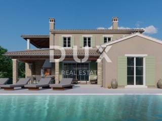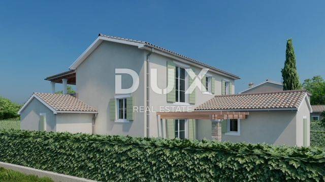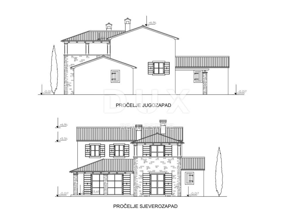 U mirnom i zelenilom okruženom istarskom selu, nudimo građevinsko zemljište s pravomoćnom građevinskom dozvolom za izgradnju luksuzne obiteljske kuće koja spaja autentični mediteranski ugođaj s modernim komforom.