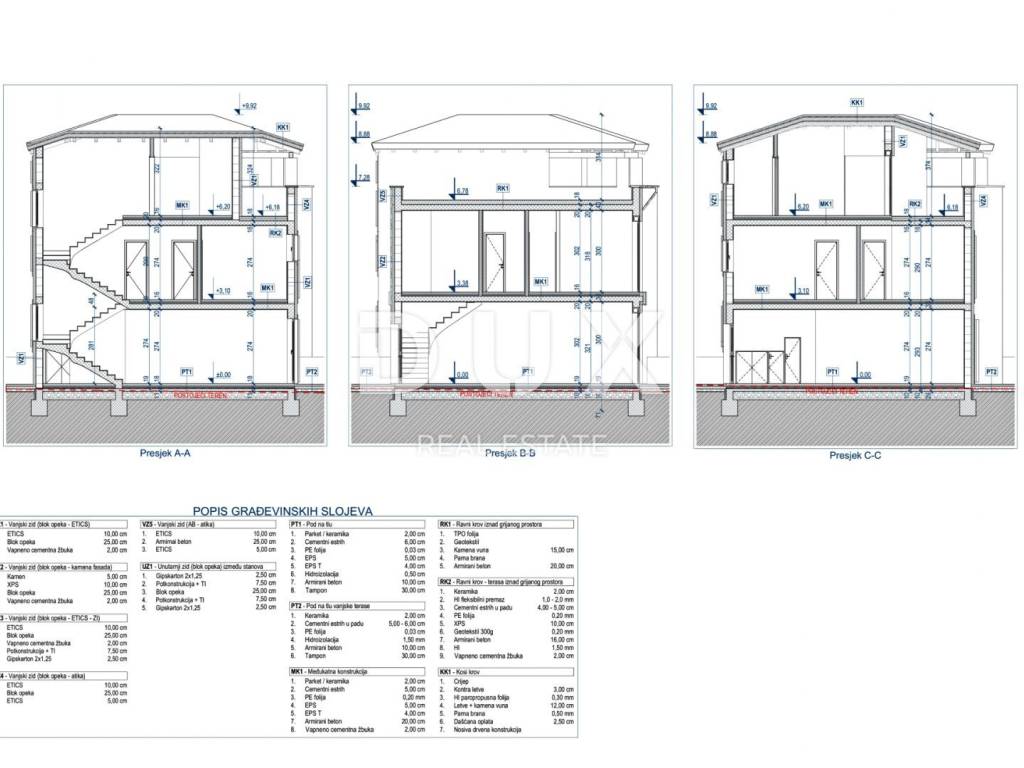Bathed in a pleasant Mediterranean climate, located in the heart of the western Istrian coast, the ancient town of Poreč and its coastline of preserved natural beauty, landscaped parks, pine and oak groves that reach the sea itself, along which the clear sea, beaches, bays and islands alternate, spreads over an area of 139 km and consists of 58 settlements. With the identity of an urban coastal city, Poreč is a city of culture, sports, entertainment, a city of tourism and true hospitality. One of the most attractive cities of Croatian tourism that uniquely combines the natural beauty of Istria, a rich cultural and historical heritage and the most modern amenities of a top tourist destination. The harmony of the old town core, which is a cultural monument, with one of the most famous Istrian cultural monuments, the Euphrasian Basilica, which is on the UNESCO World Heritage List, and the most well-maintained and best-equipped tourist settlements on the Adriatic, forms a mosaic of unforgettable experiences. Poreč is also a city that is much more than a summer destination of sun and sea. Poreč is a city tailored to the needs of people. A city in which there is a constant impulse to improve living conditions and make progress in various spheres greater. A city that is a pleasant, safe and well-maintained place to live where everyone can find their place, a city without surtaxes with high social sensitivity for all generations. In a quiet neighborhood on the outskirts of the city of Poreč, a terraced house is for sale. The house is located as part of a residential project whose architecture blends into the settlement and landscape in terms of form and color, creating a synergy of the natural environment, modern design and traditional Istrian architecture, and the quality of construction guarantees long-term satisfaction and quality of living. It is defined as one residential unit whose area is distributed over three floors. The ground floor consists of an open concept space that unites the living room, dining room and kitchen with access to the garden, bathroom, laundry room and entrance hall with wardrobe. The first floor consists of two bedrooms, a bathroom and an entrance hall. The second floor consists of an entrance hall and a master bedroom with its own bathroom, wardrobe and access to a covered terrace. The yard is completely fenced. This perfectly composed property is an exceptional opportunity for a comfortable family life as well as for investment in a tourist rental business. The stated price of the property refers to the final level of completion without furniture, which allows for final decoration according to your own wishes and preferences. The seller of the property in question is a legal entity.