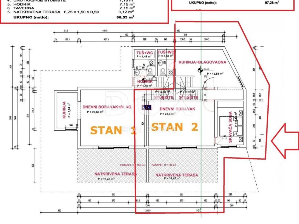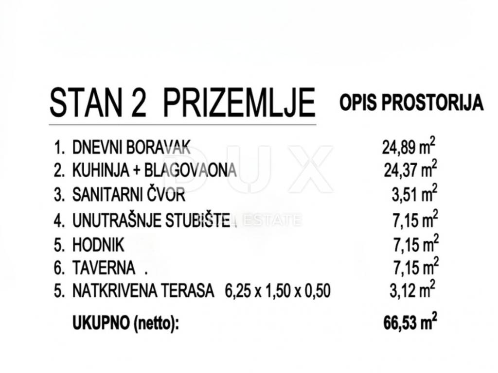 Semi-detached house consisting of GROUND FLOOR + FIRST FLOOR connected by an internal staircase. - GROUND FLOOR: DESCRIPTION OF ROOMS: 1. LIVING ROOM. 24.89 m 2. KITCHEN + DINING ROOM. 24.37 m 3. BATHROOM. 3.51 m 4. INTERNAL STAIRCASE. 7.15 m 5. HALLWAY. 7.15 m 6. BEDROOM 1 7.15 m 5. COVERED TERRACE 6.25 x 1.50 x 0.50. 3.12 m TOTAL (net): 66.53 m - 1ST FLOOR: DESCRIPTION OF ROOMS 1. BEDROOM 2. 7.95 m 2. BEDROOM 3 8.82 m 3. BATHROOM 2.41m 4. INTERNAL STAIRCASE 2.20 m 5. HALLWAY 4.74 m 6. UNCOVERED TERRACE 9.31 x 0.50 4.65m TOTAL (net): 30.75 m TOTAL GROUND FLOOR + FIRST FLOOR (NET): 97.3m2 The semi-detached house is located in a peaceful and quiet location, yet in the immediate vicinity of all the necessary facilities for a quality life. The semi-detached house is south-oriented and has a panoramic view of the entire Kvarner Bay. The semi-detached house is well built and luxuriously equipped, all installed materials, floor and wall coverings are of the highest standards. - 10cm thick facade stone wool - top quality aluminum joinery. The beautifully landscaped garden features a swimming pool set on the east side, also with a beautiful view of the sea. The terrain/garden around the house is fully landscaped and has several falling cascades in configuration. Certainly a beautiful property for luxurious family life, but also suitable as an investment in the form of elite tourism. Clean and tidy ownership. This property is 1.2km as the crow flies from the sea, or 4.7km by car (approx. 7 min). UNIQUE PROPERTY DEFINITELY WORTH YOUR ATTENTION! OPATIJA: Opatija, a beautiful coastal town located on the Adriatic Sea, is a well-known tourist destination for tourists from all over the world. The city is surrounded by beautiful nature, at the foot of Mount Učka. Properties in Opatija offer a priceless view of the sea and the surrounding islands of Krk and Cres. Opatija is surrounded by charming small towns with old houses located in narrow streets rich in history. The streets of the city of Opatija are made up of properties that stand out with their specific architecture and villas dating back to the Habsburg period. A wide selection of beaches, crystal clear sea and a variety of tourist services are key factors that make Opatija a perfect tourist destination recognized by neighboring countries as an excellent investment choice. Real estate prices in this area are growing, rental occupancy is excellent, which has caused a return on investment of 5% to 10% and attracted foreign investors.