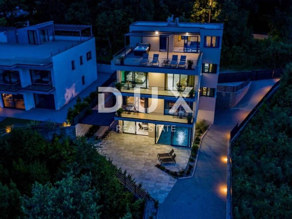 We proudly present you this stunning villa that captivates with its elegance and sophisticated style near Opatija. This spacious villa, with as much as 400m, provides an extraordinary combination of spaciousness and comfort for both your family and guests, just a few minutes from Lovran and the beach.