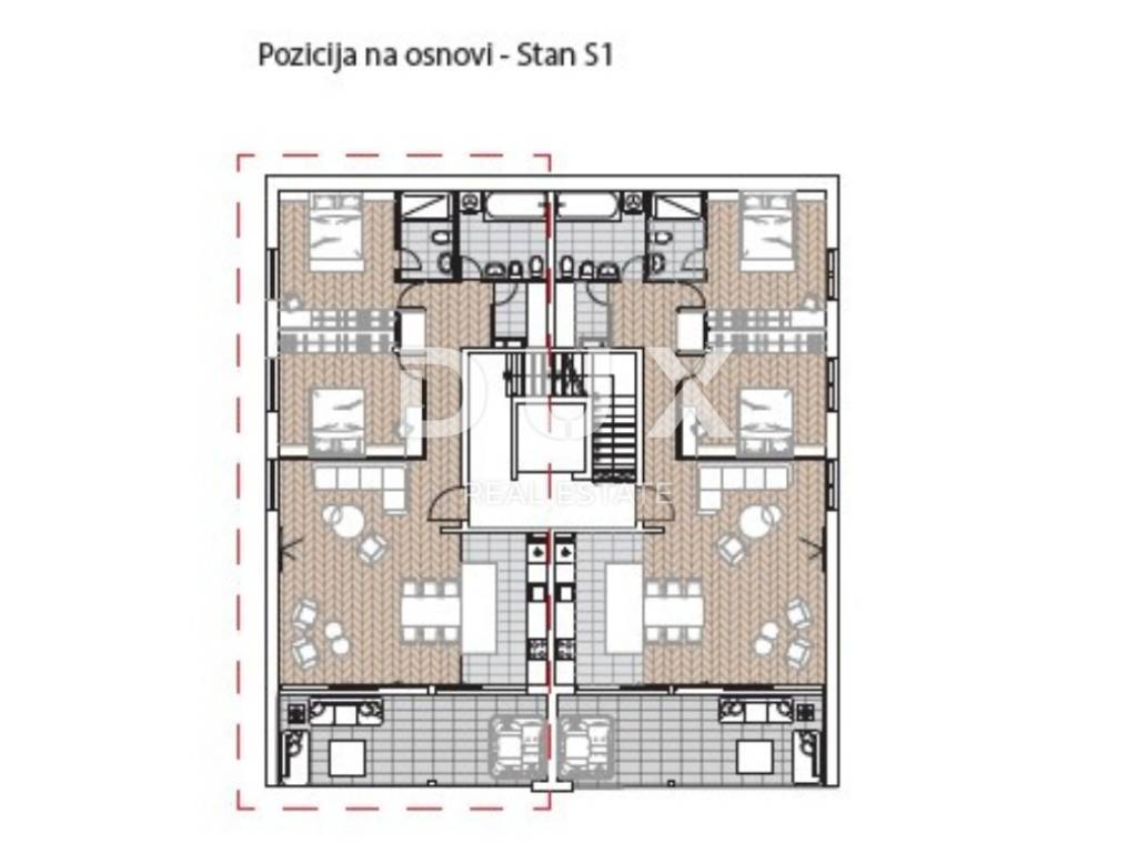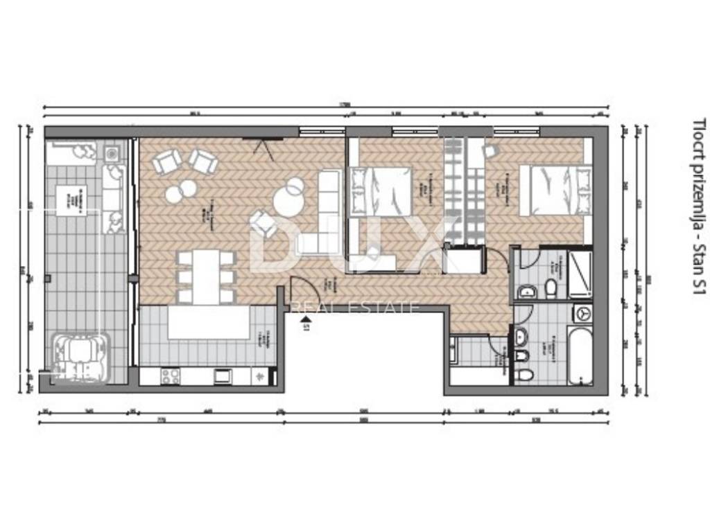 We offer an exclusive S1 apartment with a surface area of 106.93 m on the ground floor of a new building above the center of Opatija, with a large terrace and a garage. The apartment consists of two bedrooms with en suite bathrooms, a beautiful open space living room, dining room, and kitchen of 43 m. The large open space opens onto a 19 m terrace with a jacuzzi and an outdoor social area, providing incredible opportunities for outdoor relaxation.