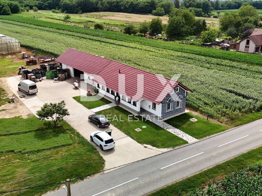 Iza kuće nalazi se plastenik za proizvodnju povrća površine 9.990 m2, visok u vrhu oko 5.8 metara. Plastenik nudi bočno i krovno otvaranje, automatizirano navodnavanje i ventilaciju. Sadrži i dubinski bunar i pumpu za navodnjavanje.