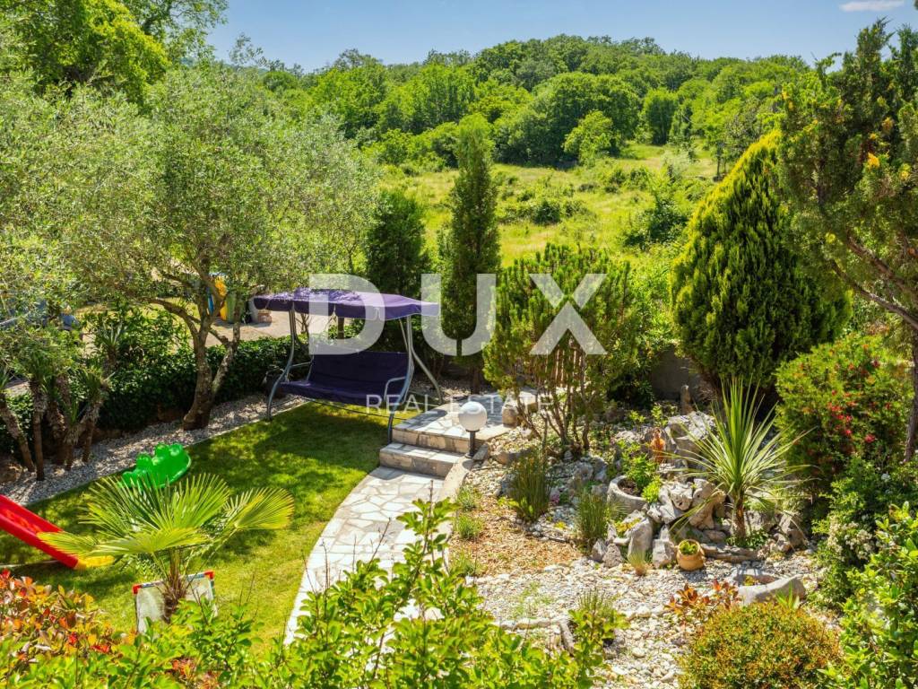 Near Vrbnik, on land surrounded by greenery, there are two seaside houses that are connected to each other and delight with their appearance. The larger house consists of a living room with a kitchen and a dining room, two bedrooms, a bathroom and a toilet. Next to it is a tavern with a wooden interior. The second house, although it is slightly smaller and has living space, has the same rooms as the larger house and has access to an uncovered terrace with a hot tub. In the garden, hidden from view, there is a heated swimming pool with a sunbathing area, a children's playground, a barbecue and a garden full of Mediterranean greenery and natural stone. A large parking lot allows comfortable parking of vehicles. The units have their own entrances and accommodate 4-5 people, and the air-conditioned rooms are decorated in a rustic style with many interesting details. The house is ideal for a secluded escape, yet a few minutes' drive from the necessary facilities and beaches. The house has been categorized and is therefore ready for rent.