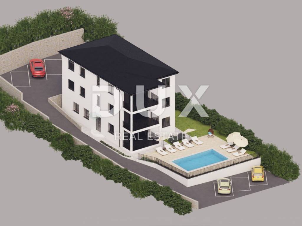 OPATIJA, IKA - larger apartment in a new building with a pool, a separate terrace, and a beautiful view of the sea.