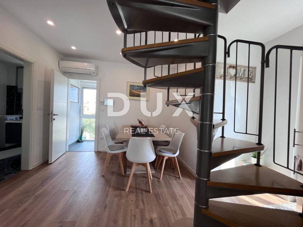 In a quiet part of Vodice, a 20-minute walk from the beach and the center, there is a charming semi-detached house with an area of 150 m. It consists of the ground floor, first floor and gallery, and offers an ideal combination of comfort and functionality. On the ground floor there is a pleasant one-room apartment with a spacious covered terrace facing south, which provides plenty of natural light. The apartment consists of a living room, a kitchen, a modern bathroom and an additional storage room. An internal staircase leads to the apartment, which consists of the first floor and a gallery, to which we climb the spiral stairs. On the first floor there is a spacious living room, kitchen, bathroom and a covered terrace ideal for relaxation. There are two comfortable bedrooms on the gallery, and an additional covered terrace provides the perfect space to enjoy peace and the view. The house is equipped with modern additional equipment, which includes electric shutters, mosquito nets on all windows, triple-glazed windows that provide excellent sound and thermal insulation, and a video surveillance system for additional security. The yard covers 120 m, with enough space for parking up to three cars. This house is ideal for those looking for a quiet, yet central place to live, with an emphasis on proximity to all amenities and natural beauty. VODICE A charming nightlife town and beach, Vodice is a small tourist destination located 10 kilometers north of Šibenik. They are popular among young visitors looking for lively places. Vodice boasts great hotels, beaches and a rich offer of nightlife. The name "Vodice" was first mentioned in written works in 1402, although it is known that people lived there as early as Roman times. The place was named "Vodice" because of the abundance of water and wells. Nearby is the islet of Prvić, the city of Split is 69 km away, Zadar is 59 km away, and the nearest airport is 49 km away.