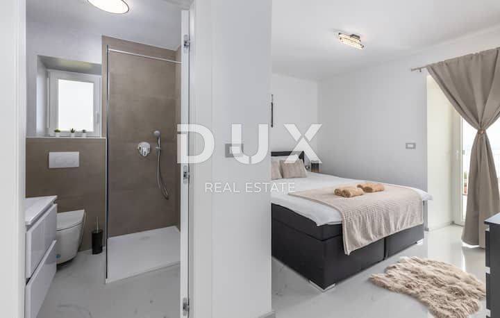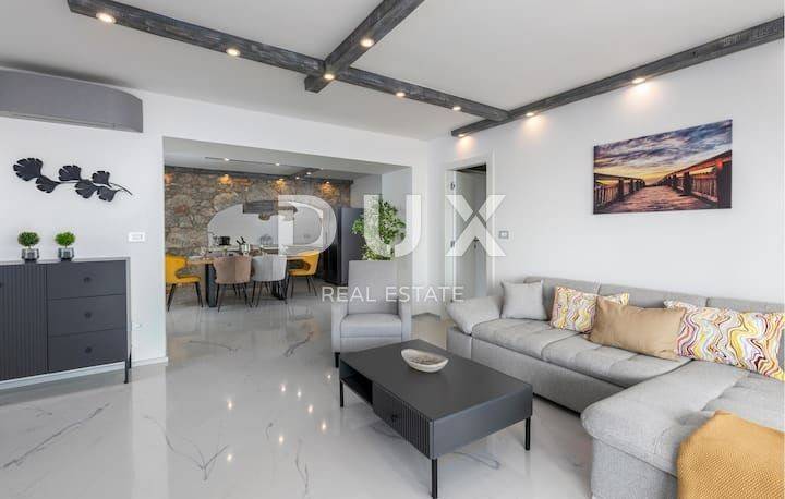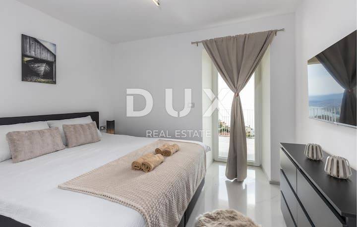 The spacious apartment on the ground floor consists of a large living room, 3 bedrooms, kitchen and 2 bathrooms. The apartment also has a studio apartment of 25 m2. The yard consists of a beautiful swimming pool, a sauna and a children's playground and, of course, table tennis, for those who want some fun and activities. The apartment is located in a building with a total of 4 residential units. The apartment is located in a peaceful and quiet location, yet in the immediate vicinity of all necessary amenities for a quality life. The apartment is south-oriented, and has a panoramic view of the entire Kvarner Bay. The building in which the apartment is located is well built and luxuriously equipped, all installed materials, floor and wall coverings are of the highest standards. - facade stone wool 10 cm thick - high quality aluminum joinery. The swimming pool, which is placed on the east side, also with a beautiful view of the sea, stands out in the beautifully landscaped garden. The grounds/courtyard around the building is fully landscaped and has several falling cascades. The apartment is sold fully furnished with first-class furniture and appliances. Certainly a beautiful property for a luxurious family life, but also suitable as an investment in the form of elite tourism. Clean and tidy property. This property is 1.2 km from the sea as the crow flies, or 4.7 km by car (about 7 minutes). A UNIQUE PROPERTY DEFINITELY WORTH YOUR ATTENTION! Opatija: Opatija, a beautiful coastal town located on the Adriatic Sea, is a famous tourist destination for tourists from all over the world. The city is surrounded by beautiful nature, at the foot of the Učka mountain. Real estate in Opatija offers a priceless view of the sea and the surrounding islands of Krk and Cres. Opatija is surrounded by charming small towns with old houses located in narrow streets rich in history. The streets of the city of Opatija are made up of properties that stand out with their specific architecture and villas that date from the Habsburg period. A large selection of beaches, crystal clear sea and various tourist services are the key factors that make Opatija a perfect tourist destination recognized by neighboring countries as an excellent investment choice. Real estate prices in this area are rising, rental occupancy is excellent, which has resulted in a return on investment of 5% to 10% and attracting foreign investors.