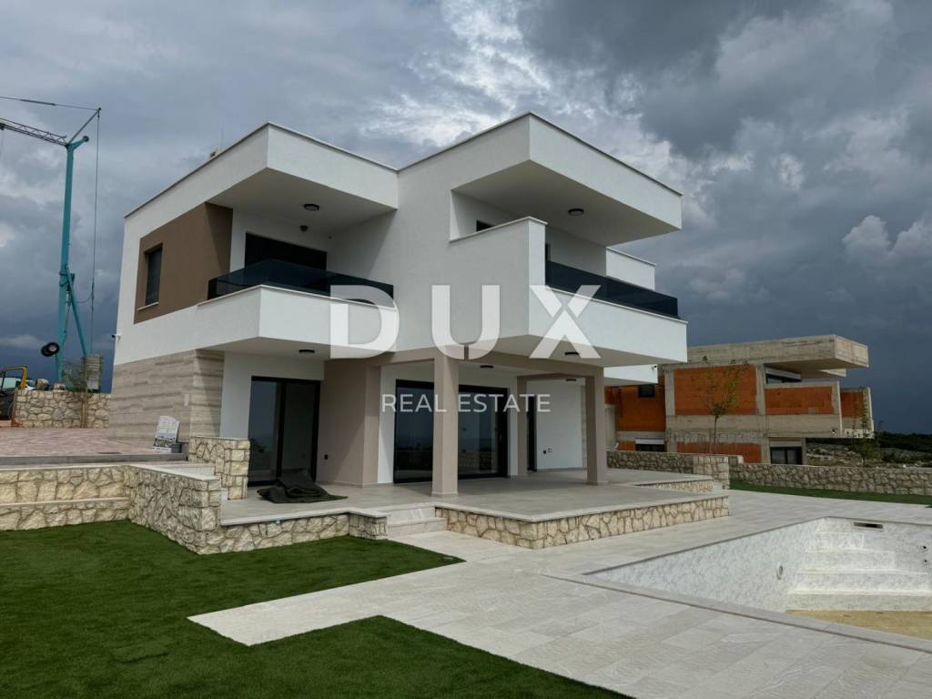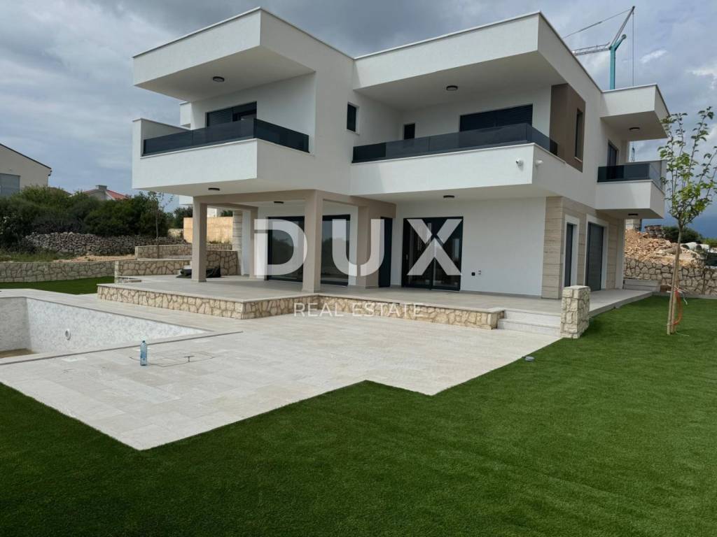 We are selling a house with a swimming pool and a fantastic view of the sea in a beautiful and quiet location near Novalja. On the ground floor of the house there is an entrance hall, a space intended for a sauna, a guest toilet, a pantry, a kitchen with a dining room and a living room with access to a covered terrace. On the first floor of the house, we have four bedrooms, three of which have their own bathroom, balconies with a wonderful view of the sea. Within the garden there is a larger swimming pool, a sunbathing area and a relaxation zone for grilling. This wonderful project is located on a plot of 620m2 which is currently under construction and is located in a beautiful and quiet location that offers privacy and comfort. The house will be sold in the turnkey phase. The heating will be underfloor throughout both floors and fully air-conditioned. The expected completion of construction and occupancy is expected in the middle of 2024.