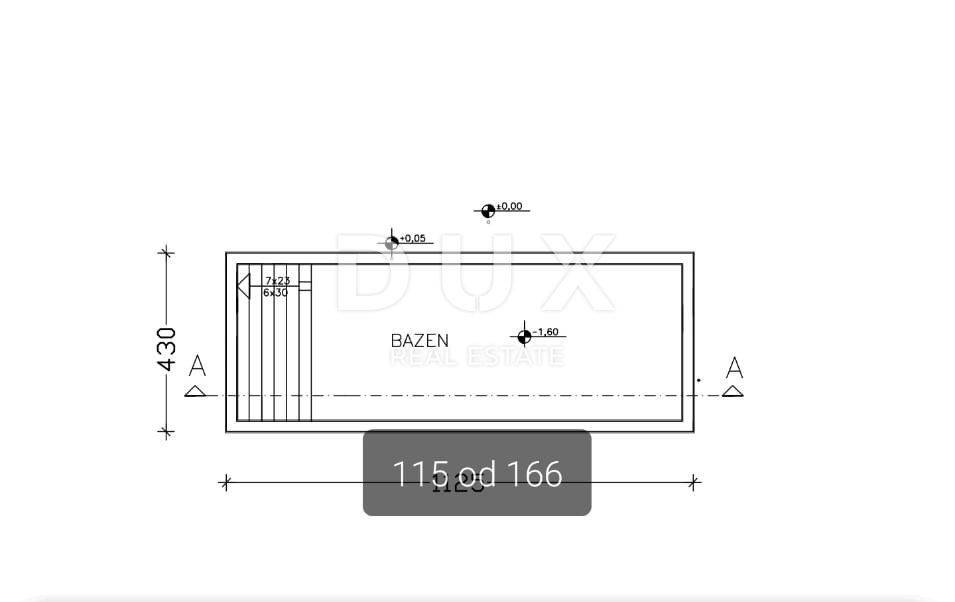Naravno svaka od vila uključuje i vlastiti bazen na okućnici, dimenzija 4,30m X 11,25m, uz veću natkrivenu terasu gdje je planirana sjedeća garnitura i prostor za zabavu.