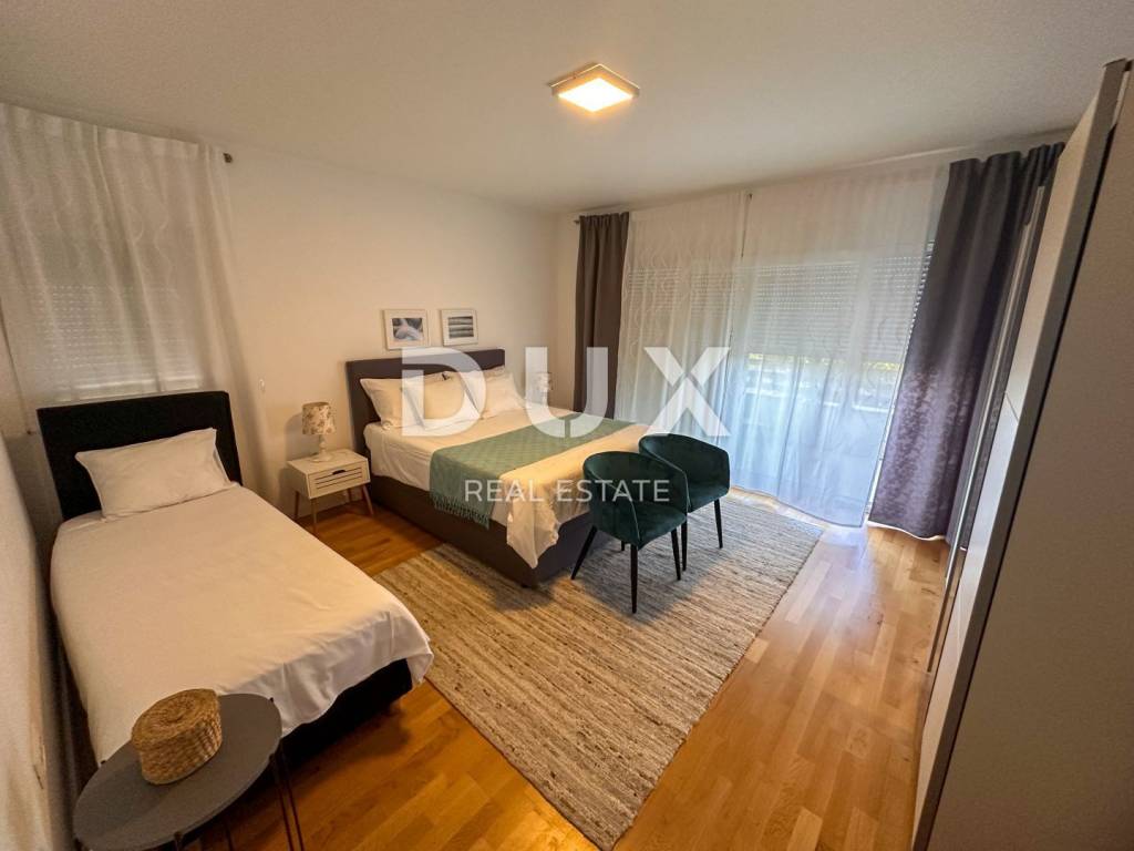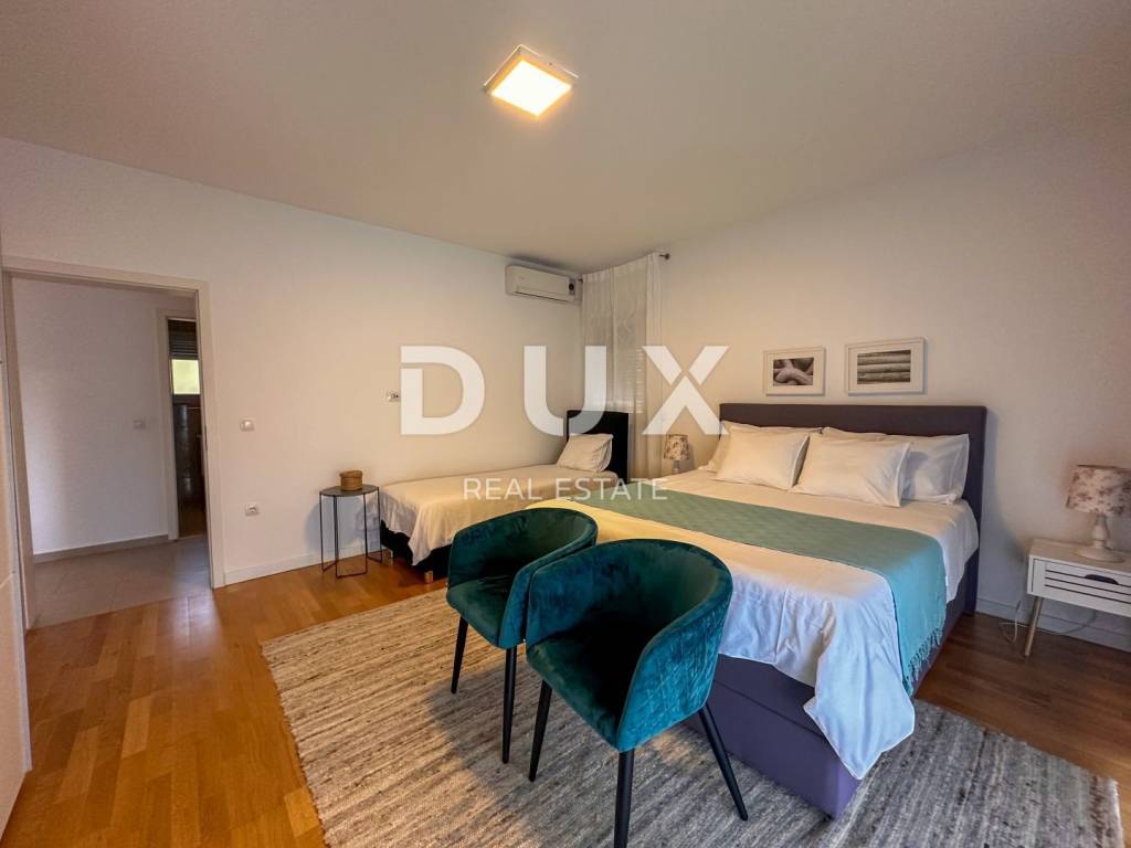 This beautiful modern furnished apartment is located on the first floor of a new building with three residential units in Matulji. It covers 97.40 m and offers comfort and functionality through three spacious bedrooms, a bright living room with a dining room, two modern bathrooms and a practical hallway. Additional charm of this property is given by the south-facing balcony with a view of the sea, which is perfect for enjoying a morning coffee or an afternoon gathering with friends and family. The apartment is fully furnished and equipped, ready to move in without additional investments. It abounds in natural warmth and light throughout the day thanks to large glass surfaces and cleverly designed layout of the rooms. Heating is provided by high-quality heat pumps, which ensures economy and environmental friendliness. In addition, each bedroom and living room are equipped with air conditioners, which provides additional comfort during the summer months. The apartment also comes with one parking space, which is a big advantage in an urban environment. The apartment is located in a highly sought-after location, close to all essential facilities such as shops, restaurants, schools and public transport, making everyday life extremely convenient. In addition, the center of Opatija and the first beaches are only a seven-minute drive away, which allows quick and easy access to the sea and all the joys that coastal life offers. This property represents a rare opportunity on the market, combining luxurious living space, a fantastic location and numerous amenities, making it ideal for anyone looking for a top quality home or a valuable investment in Matulji.