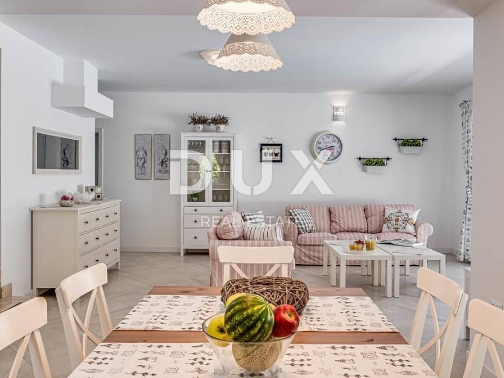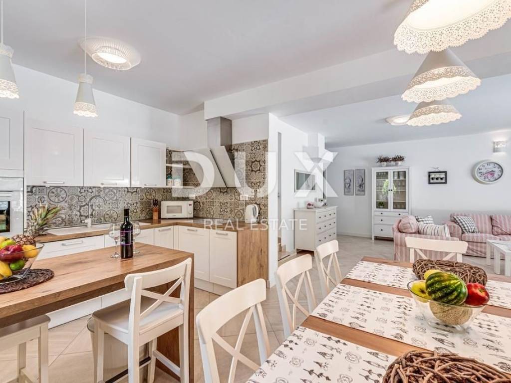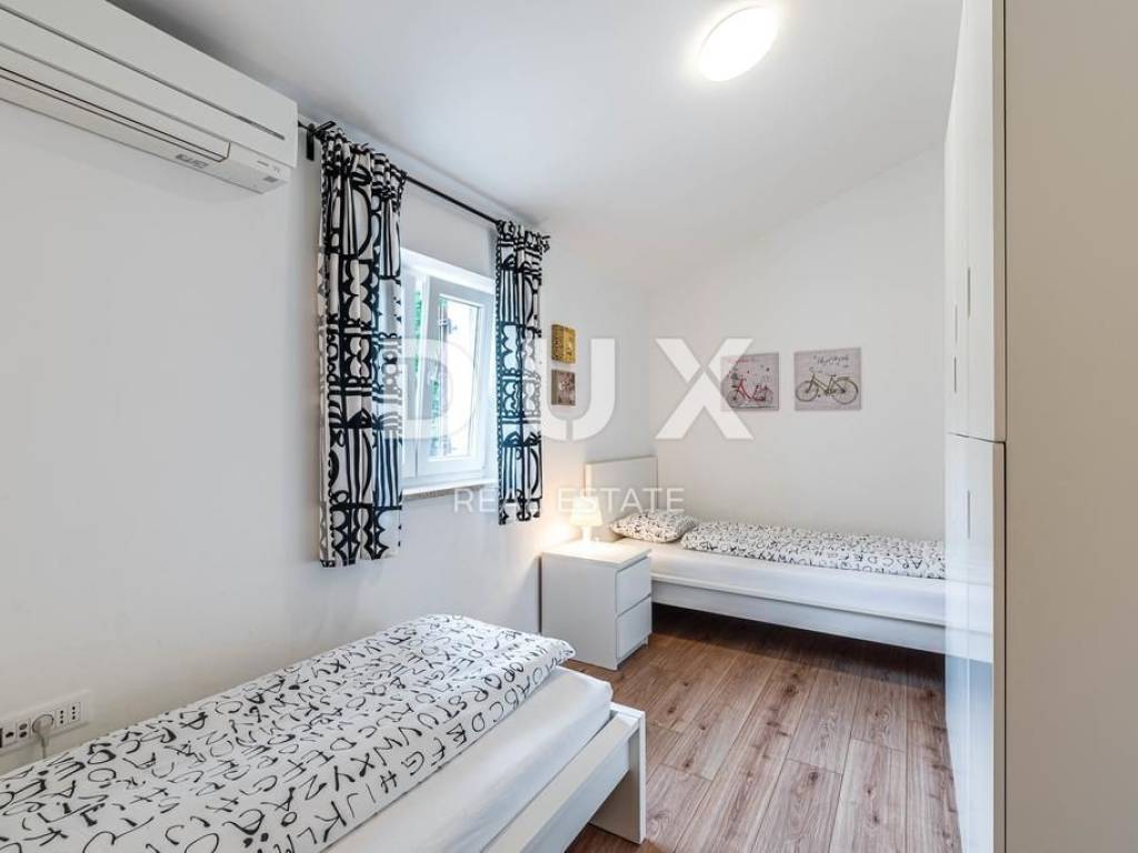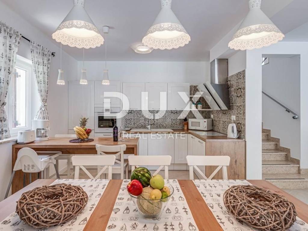 We proudly present this warm and quality family villa, located in a small settlement near the town of Labin. It is a villa that offers its future owners everything they need for a safe and peaceful stay in an environment with nature and greenery. It is located only 15 km from the tourist town of Rabac, known for its natural and landscaped beaches, incredible walks and a rich tourist offer. Head with us towards this excellent opportunity, and maybe right here your search for the ideal property will have a happy ending. PROPERTY DESCRIPTION: It is a villa that consists of a total of 143 m2 of living space, and is located on a comfortable garden of 500 m2. The villa is thus divided into two floors, ground floor and first floor. On the ground floor of the villa, there is an entrance hall with a wardrobe area, which then leads us to the living area of the villa, designed according to the "open space" system without dividing walls, in which there is a modern and equipped kitchen, a spacious dining room sufficient for the whole family, and then a spacious living room. From this area there is access to a larger covered terrace, ideal for socializing and having fun with friends and family, as well as for resting after an active day. On the ground floor of the villa, there is also a guest toilet and a storage room, as well as the first larger bedroom with its own bathroom, which also has private access to the garden with a swimming pool. Further on, the internal staircase leads to the upper floor of the villa, where there are 3 bedrooms, each of which has its own bathroom and a view of the slightly hilly landscape and greenery. DESCRIPTION OF THE GARDEN: An outdoor barbecue, a spacious 32m2 swimming pool with the option of installing a heated water system are located on the landscaped and fully fenced garden of 500m2. There is also a children's playground on the garden, which makes it ideal for fun and carefree play for your youngest family members. In front of the villa there is enough parking space for 3 cars. ADDITIONAL INFORMATION: * The villa is sold furnished * The villa is equipped with new air conditioners, underfloor heating has also been installed. * It also has a chimney with the option of installing a pellet or wood stove. * The ownership of the villa is in order, the owner is 1/1, and the villa has all the necessary documentation. The property is suitable for a safe and peaceful family life, but it can also be a profitable investment in tourism. Dear clients, the agency commission is charged in accordance with the General Terms and Conditions. https://www.dux-nekretnine.hr/opci-uvjeti-poslovanja