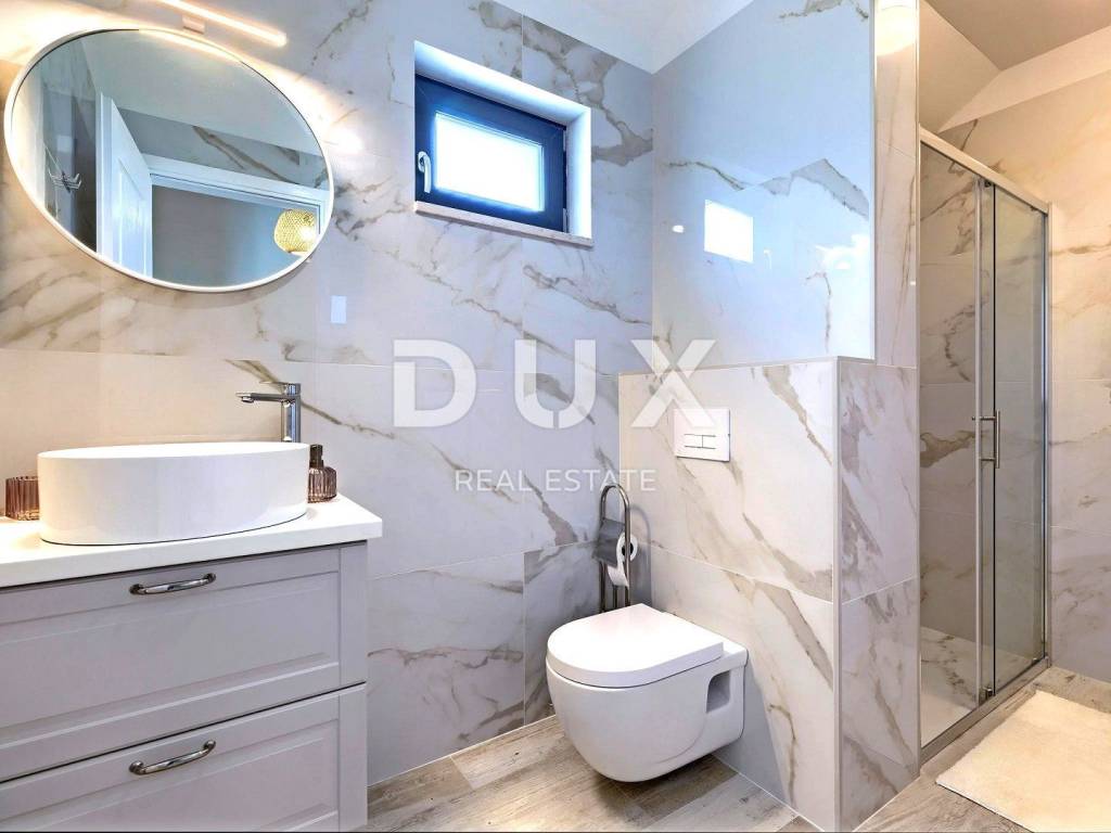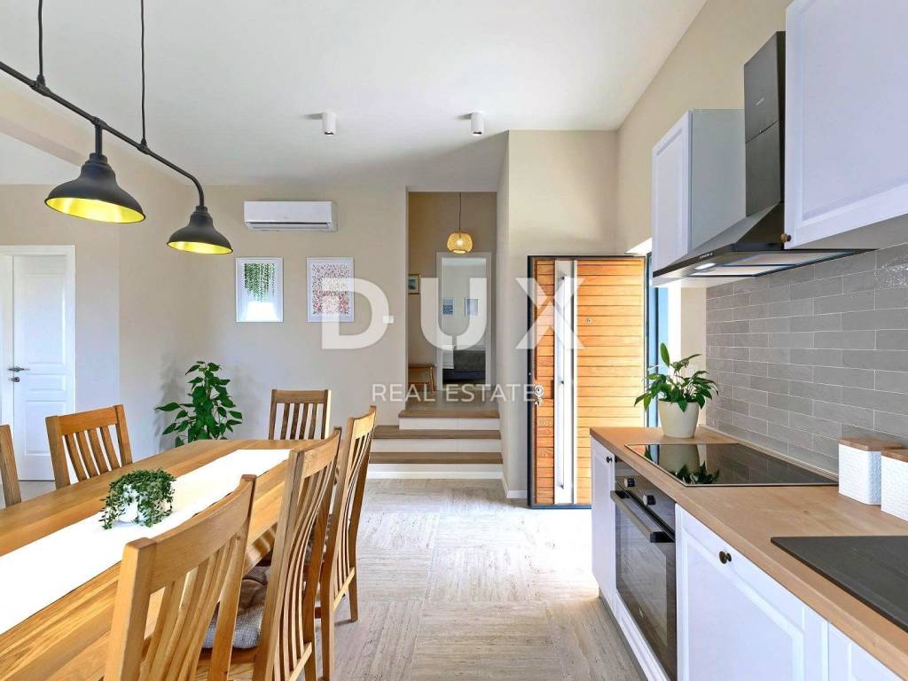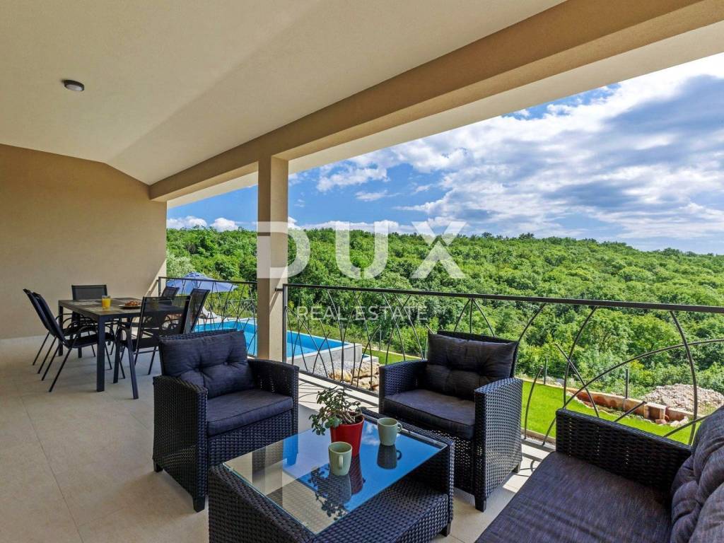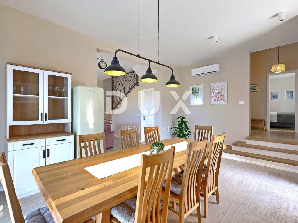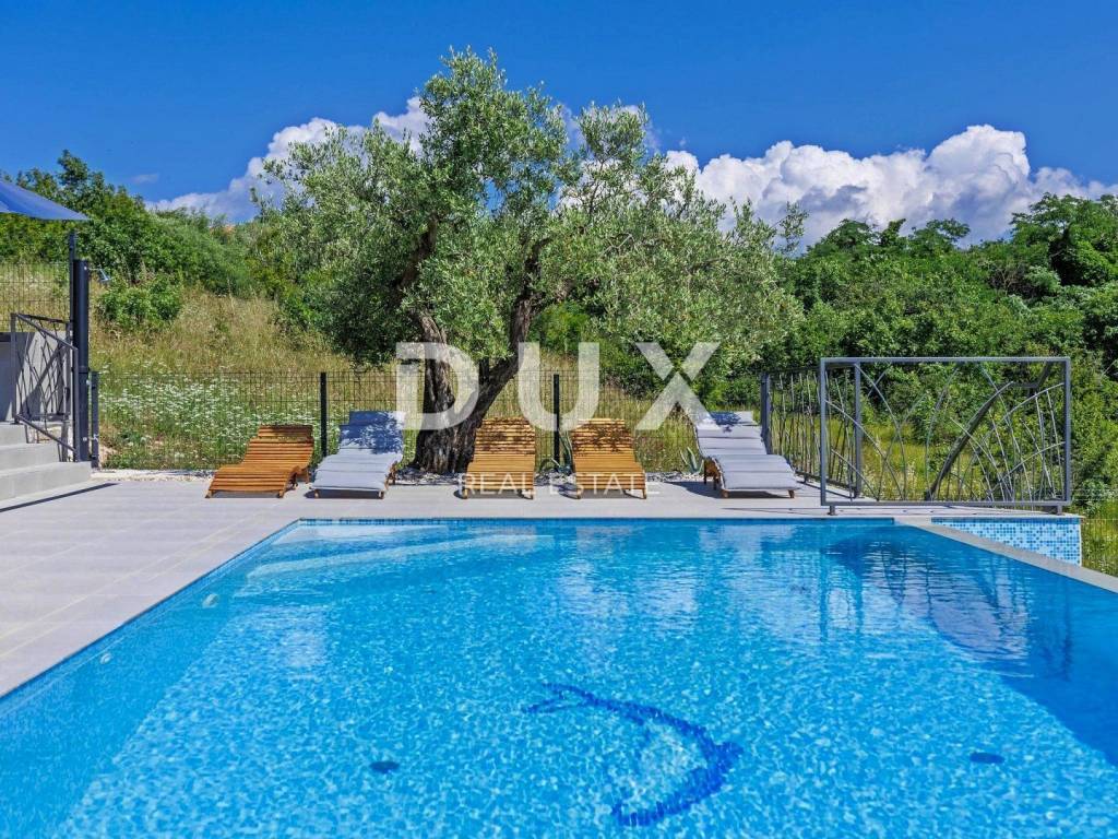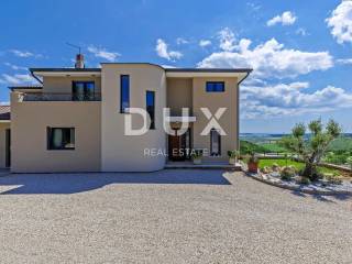 The idyllic Brtonigla is located on the northwestern part of the Istrian peninsula. It is located on a 141 m high hill, surrounded by vineyards and olive groves. In fact, the municipality of Brtonigla stands on "four lands", which means that all types of soil that exist in Istria are present on the territory of the city, which is a unique case in Istria. The municipality of Brtonigla covers a territory of 33 km, stretching along the sea coast and inland, green, Istria. Beautiful green vineyards and olive groves surrounded by paths, wine cellars with top quality wine and traditional Istrian delicacies that seduce the palate, as well as natural parks and caves and beautiful flora and fauna, providing hidden roads through meadows and forests that lead to beautiful beaches in just a few minutes with a crystal sea, photogenic Brtonigla is a combination of hedonism and adventure. Brtonigla and its surroundings are a harmonious mixture of the sea, vineyards, olive groves, fields, rivers and forests with picturesque and proudly decorated settlements. Not far from Brtonigla, on the edge of a quiet village, there is a villa for sale with a panoramic view of the sea. In addition to a convenient location that offers a perfect balance of rural surroundings and proximity to urban amenities and a sensational view, the property is also characterized by quality construction that guarantees long-term satisfaction and quality of living. With its architecture, the villa fits into the village and the landscape in terms of shape and color, and the interior layout spread over three floors offers a harmonious living environment that exudes elegance and provides a high level of comfort with top-quality equipment and elements of modern furniture. The refined villa extends through the basement, ground floor and first floor. The basement consists of a tavern, a meeting room, a boiler room and a storage room, while the ground floor and the first floor consist of two residential units. One residential unit extends through the ground floor and first floor. The ground floor consists of a living room, a dining room and a kitchen with access to a covered terrace, a bedroom, a bathroom and a storage room, while the first floor consists of four bedrooms, two bathrooms and a terrace. The second residential unit extends through the ground floor and first floor. The ground floor consists of a living room, a dining room and a kitchen with access to a covered terrace, a bedroom, a bathroom and a storage room, while the first floor consists of three bedrooms with their own bathrooms and a terrace. The yard is landscaped and horticulturally decorated, and complete harmony is provided by a heated swimming pool with a sunbathing area. The excellent location and the spatial organization of the interior and exterior of this comfortable property provide an opportunity for a comfortable family life or an investment in a tourism rental business. Dear clients, the agency commission is charged in accordance with the General Business Conditions: www.dux-nekretnine.hr/opci-uvjeti-poslovanja