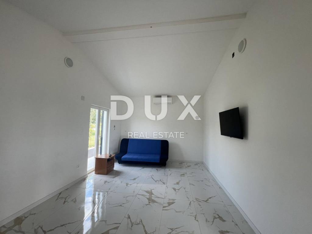 On the southeastern coast of Istria, where green hills meet the sea, where nature and heritage meet, there are two towns of similar size but with different but mutually complementary characters - Labin and Rabac. The picturesque town of Labin rises on a hill 320 meters high, only five kilometers from the white pebble beaches in Rabac. Intertwined with rich history and mining that marked this region, Labin, which was declared an independent republic for a short time, is today a fascinating city of contradictions; old and new, history and present, tourism and art. In a small village a little more than 5 km from Labin in eastern Istria, this completely renovated detached house of 56 m2, 1 bedroom + living room, with terrace and parking is for sale. A detached renovated house of 56 m2 is for sale just a few kilometers from the town of Labin. It consists of a bedroom, living room with kitchen and dining room and bathroom. There is also an auxiliary object, i.e. a storage area of 20m2. On the terrace there is an autochthonous Istrian water cistern. Heating and cooling is via air conditioning. The yard is 1100m2. Ownership in order. Dear clients, the agency commission is charged in accordance with the General Terms and Conditions: http://www.dux-nekretnine.hr/opci-uvjeti-poslovanja