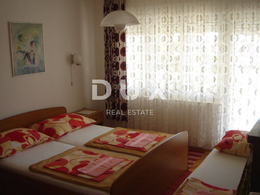 We mediate in the sale of a terraced house, with three floors and a garage. The house has three residential units, each with a separate entrance and an auxiliary building. In the basement there is a garage, on the ground floor there is an apartment consisting of two bedrooms, living room, kitchen with dining room, bathroom, separate toilet, terrace. On the first floor there are two one-room apartments. All apartments are categorized, so by buying this house, you can continue to rent it as a tourist and get a quick return on your investment. All apartments are equipped with quality furniture and appliances. The house is also decorated with a beautiful garden. It is possible to park several vehicles in the garage and in front of the house. The house offers a beautiful view of the sea and the island of Krk. The house is of high quality, spacious with several terraces on each floor, with a garage, and is located a few minutes' walk from the sea and the first beach. Ideal property for further tourist rental or for a larger family. For all other information, contact the agent.