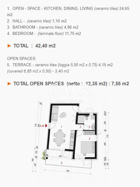 We present to you an exceptional opportunity to become the owner of a newly built apartment in Starigrad near Zadar. The apartment consists of a living room with kitchen and dining room, bathroom, bedroom, terrace and one parking space. Each apartment has a separate entrance and a terrace facing the sea. The building is positioned in an excellent location, with tourist content and sports fields, it has excellent traffic connections, and the most important information related to the macro location is that the objects in question are 2 km from the National Park "Paklenica", and that the national park is also nearby parks: North Velebit, Kornati and Krka. For all lovers of nature and active vacations, this is the ideal place as a combination of "blue" (sea), "white" (mountain) and "green" (forest) Croatia. This type of apartment is an excellent business investment because Starigrad ensures an extended tourist season due to mountain tourism. The apartment is available for occupancy from July 2024. Don't miss the opportunity! Now is the right time to take advantage of this rare opportunity and become the owner of a beautiful apartment in Starigrad. Contact us today to learn more and book your tour! The real estate is in the VAT system (legal entity) and the buyer does not pay real estate sales tax.