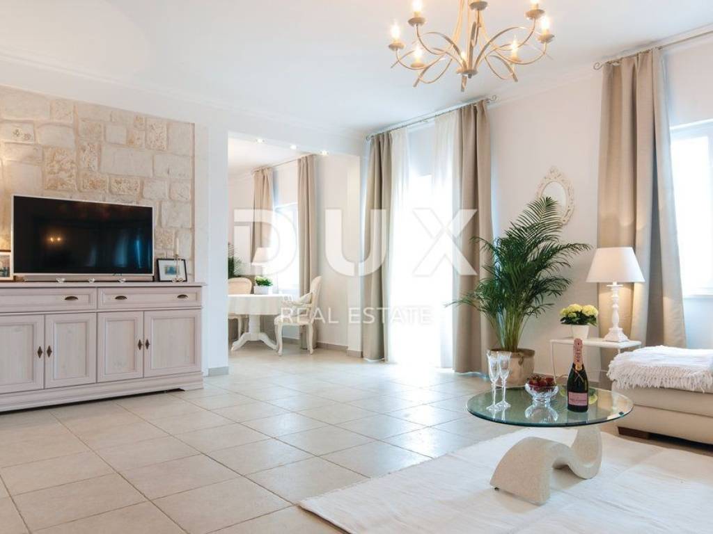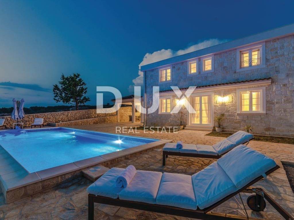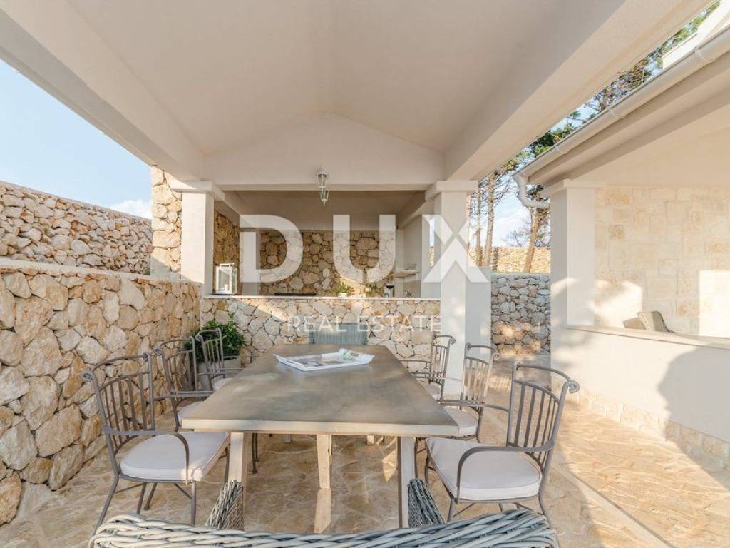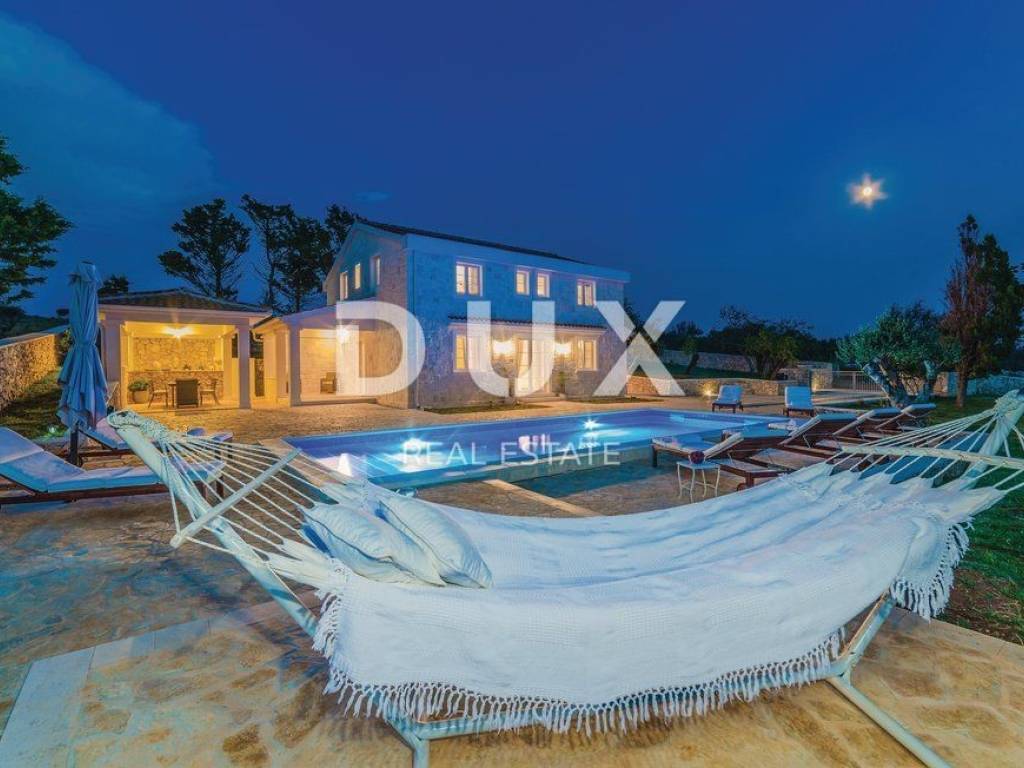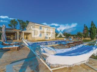 We are selling this beautiful autochthonous stone house with a swimming pool on a beautiful and landscaped plot of 1200m2 with a beautiful view of the sea. The house is located in a quiet and private location near Novalja. This stone beauty is completely covered and paved with Brac and Benkovac stone, it is divided into two floors where we have an open space kitchen with dining room and living room, five bedrooms and six bathrooms. From the ground floor of the house, we go out to a covered terrace with a relaxation zone and a place for grilling, a sunbathing area and a swimming pool with a panoramic view of the sea and the surrounding area. The unique and peaceful location guarantees uninterrupted privacy, peace and comfort. The house is completely and tastefully furnished in a rustic modern style and is being sold as such. The property is rented for tourists during the season. Viewing the property is possible with an appointment announced in advance.