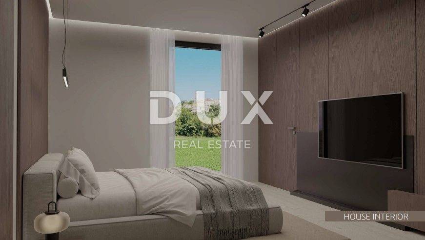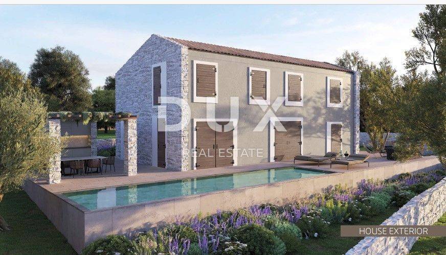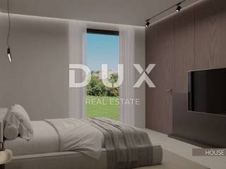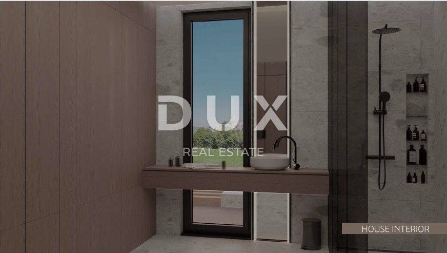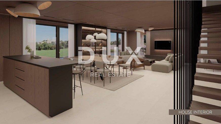 This luxurious villa is located on a picturesque hill in the heart of Istria, at the foot of Oprtalj, just a few minutes' drive from the medieval towns of Motovun and Grožnjan, well-known frequent cultural and artistic destinations of beautiful Istria. In addition, prominent Istrian wineries, such as Roxanich, Tomaz, Fakin and Kabole, are also located in the immediate vicinity of the villa, so staying in this fantastic property enables a complete experience of this very different Croatian region. The villa was designed by a famous Croatian architect with attention to traditional Istrian construction methods with a touch of modern design. This imposing villa of 250 m2 is spread over a plot of 900 m2, thus providing complete comfort and privacy with the possibility of arranging the garden and living space according to your own taste. Located on the hills of inner Istria, this enchanting villa offers views of the nearby vineyards, and around the property there is a green belt, i.e. an area where construction is not possible, which ensures considerable privacy and peace. The villa consists of first-class designer furniture, a smart home system, and the interior is elegantly and modernly equipped with top-class ceramic tiles, extraordinary parquet, and the kitchen is equipped with world-class quality appliances. On the ground floor of the villa there is an extraordinary open space consisting of a large living room, dining room and kitchen, with a living room toilet and a mini wellness area, and this warm space opens onto the garden with a swimming pool. A beautiful wooden staircase leads to the first floor of the house with 4 bedrooms with en suite bathrooms. The entire space exudes warmth thanks to the beautiful wooden ceilings, and the windows and blinds are made of elegant wooden materials. The house has a spacious heated pool, and next to the pool there is a barbecue area and an open-air kitchen that guarantees an unforgettable experience and socializing with friends and family. This is a perfect opportunity to buy a property in the very heart of one of the most beautiful regions of Croatia, known for its terroir, gastronomic delicacies, enchanting nature and countless other possibilities. Dear clients, the agency commission is charged in accordance with the General Terms and Conditions. https://www.dux-nekretnine.hr/opci-uvjeti-poslovanja