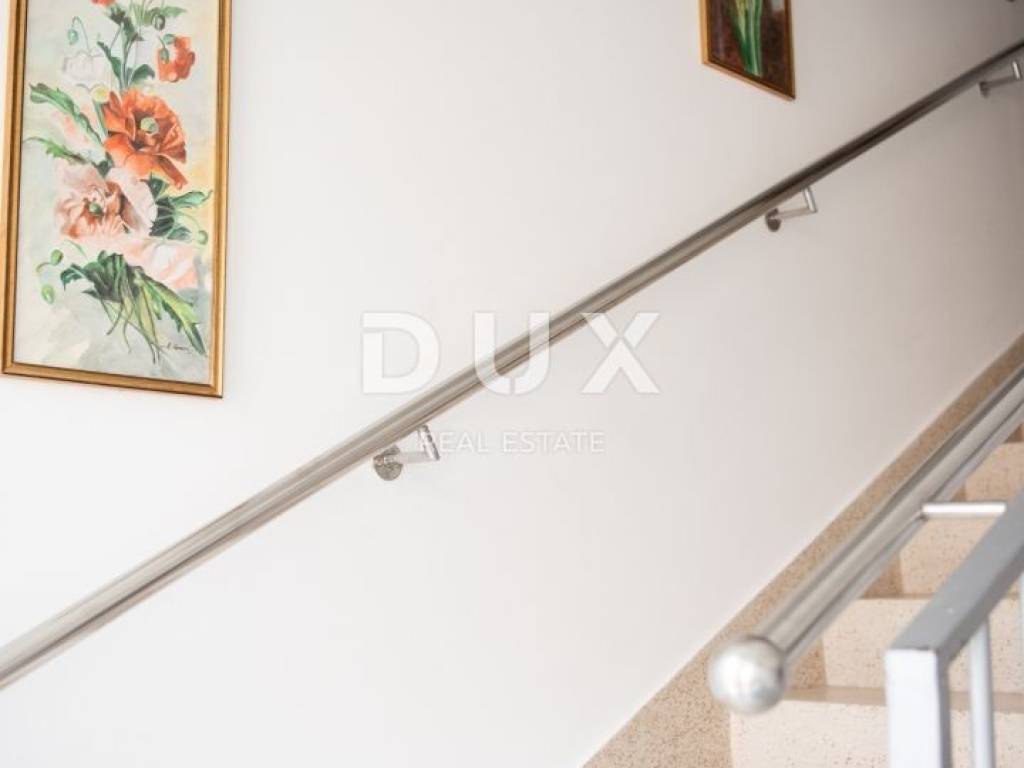 In the center of Premantura, in a very attractive location, we mediate the sale of a detached house. The total area is 150m2 and consists of 2 apartments with separate entrances. It extends over two floors. There is an apartment on the ground floor with one bedroom, kitchen, living room, bathroom and covered terrace. On the first floor there is a second apartment consisting of a kitchen with a living room, a bathroom, two bedrooms and a large terrace. Gas central heating is used for heating in the winter months. Each apartment has an air conditioner installed. Solar panels are used for water heating. The house was renovated in 2020. There is a barbecue and two parking spaces in the garden. The house has video surveillance. The new owners have the option of upgrading another floor, which would offer a view of the sea. The distance from the beautiful beaches with crystal clear sea is only 600 m. For additional information or to arrange a viewing date, please feel free to contact me. Dear clients, the agency commission is charged in accordance with the General Business Conditions www.dux-nekretnine.hr/opci-uvjeti-poslovanja