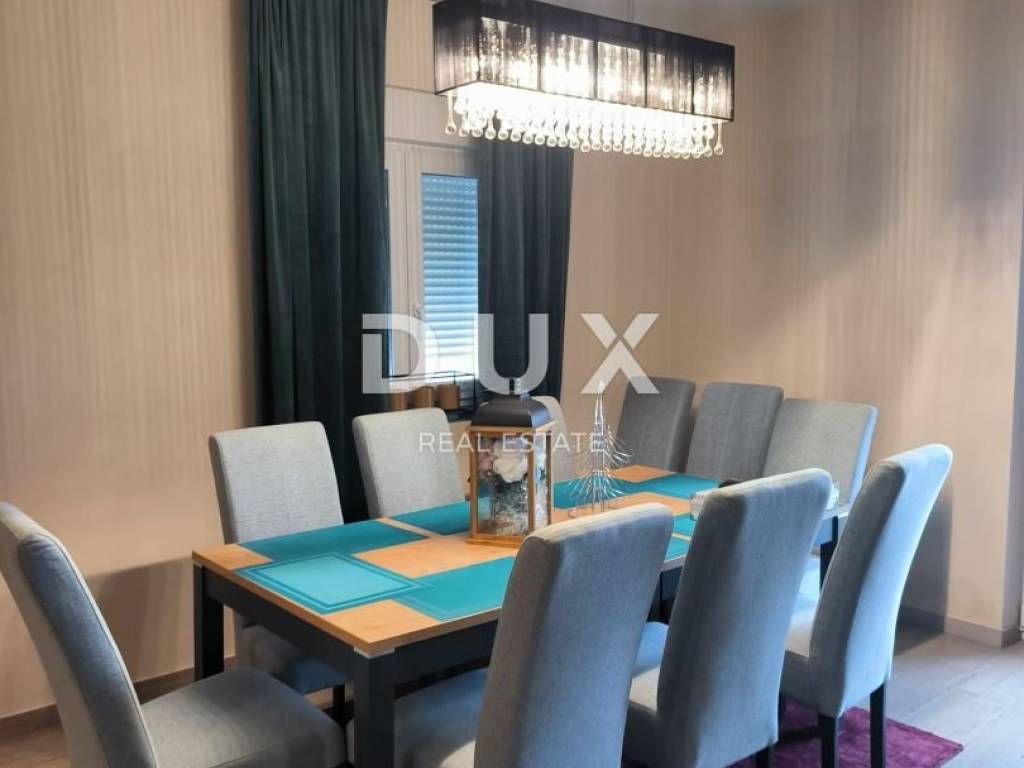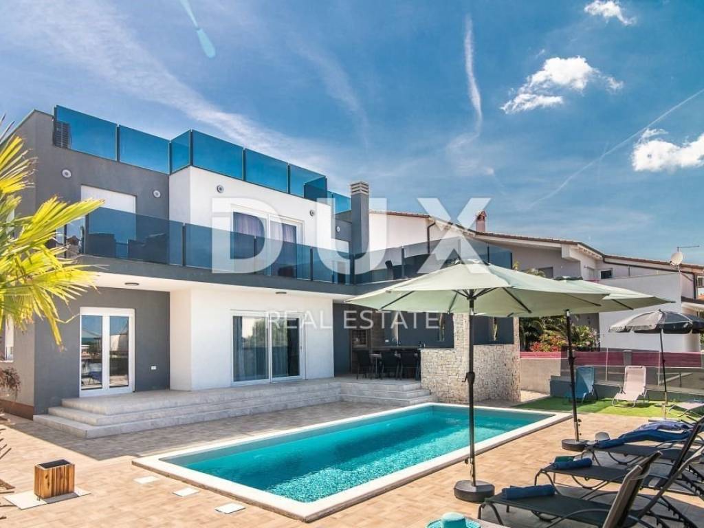 We present a property that is an excellent ratio of invested and received, especially for those who want to invest and engage in tourism! This property primarily has a top location due to the walking distance from the sea, only a 7-minute walk, restaurants, shops, pharmacies, kindergarten, school in the district of 1 km. The position of the land provided this house with a panoramic view of the sea from almost all parts of the house that will never be lost due to the elevated terrain. It was built in 2019/2020 and is under warranty from the contractor for 10 years. It offers 190 m2 of living space, and is located on a plot of 574 m2. Upon entering the villa, we access the open space living room with kitchen and dining room through a separate entrance, and in addition to the above, on the ground floor there is a bedroom, a bathroom and a large utility room, which is an ideal room for all household needs. From the living room, through spacious glass walls, one part leads to the covered summer kitchen with a family table, and the other wall leads to the swimming pool. The internal stairs lead to the first floor, where there are 4 bedrooms, 2 bathrooms, and two terraces. The master bedroom offers absolute hedonism because when you are in bed, the sea stretches out in the palm of your hand, and next to the room there is also a terrace accessed through large glass walls. Almost every room of this great investment villa has a view of the sea. The villa is equipped with air conditioning and has electric shutters. There are two accesses to the house, one is intended for cars and the house itself offers 5 parking spaces, and the other access is pedestrian. This is an ideal property primarily for tourism, because of all the above, this villa has fantastic results in the two seasons it has worked and has maximum occupancy! Dear clients, the agency commission is charged in accordance with the General Terms and Conditions. www.dux-nekretnine.hr/opci-uvjeti-poslovanja