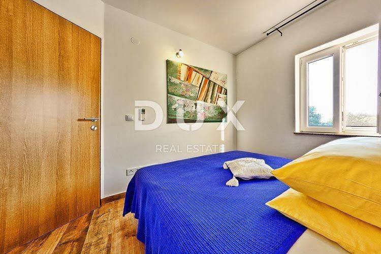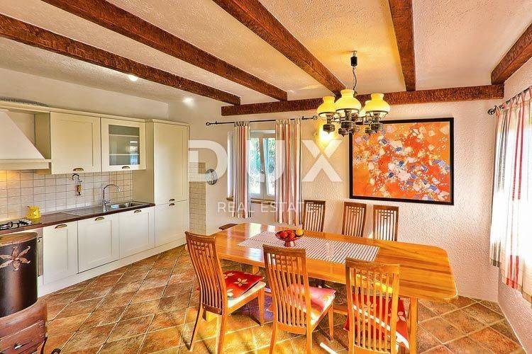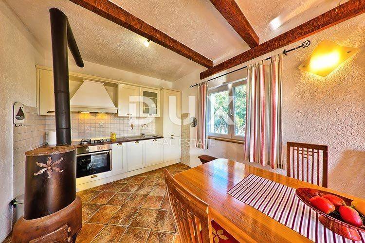 The island of Rab, located in the Kvarner Bay in the northern Adriatic, is a true paradise for lovers of nature and an authentic island atmosphere. Its timeless beauty was recognized by the Romans in ancient times, calling it Felix Arba or Happy Rab. Even today, visitors are attracted by the amazing nature of the island - from numerous sandy beaches on the Lopar peninsula and stunning hidden bays on the Kalifront peninsula to preserved holm oak forests, fertile valleys and the rocky mountain peak of Kamenjak, which protects against storms in winter. This beautiful, newly built house will provide you with the perfect haven for vacation, both in summer and in winter. A lovely combination of rustic and modern interior in which the owners have invested a lot of love and effort, with numerous art objects, will show you that this villa is much more than an ordinary holiday home. It covers 150 m2 and consists of the ground floor, first floor and attic. The ground floor of the house is decorated in a rustic style, it consists of a minivan room with a modern kitchen, a living room with a fireplace and a corner for relaxation, a dining room and a bathroom with a shower. On the ground floor there is also a corner for outdoor dining, and if you want to make a barbecue or bake, there is a unique fireplace at your disposal in the outer part of the house. On the first floor there are three bedrooms and two modern bathrooms with a walk-in shower. All three rooms are equipped with comfortable double beds of high quality, from a renowned Croatian manufacturer. In the attic there is a spacious room with two twin beds and a corner for rest, which has access to a large terrace of 25 m2 with a view of the wonderful blue of Kvarner and the nearby islands. The terrace is equipped with lounge furniture and deckchairs for sunbathing, which will make this terrace a favorite place to stay throughout the day, in the morning for drinking the first morning coffee, during the day for sunbathing, and in the evening for enjoying under the stars. Ideal property for tourist rental or family life.