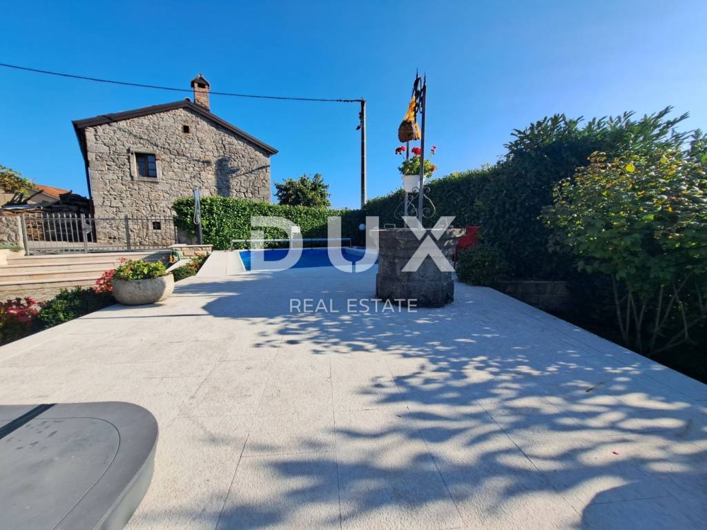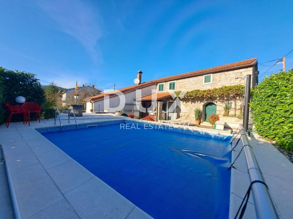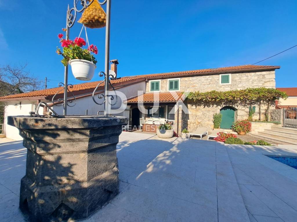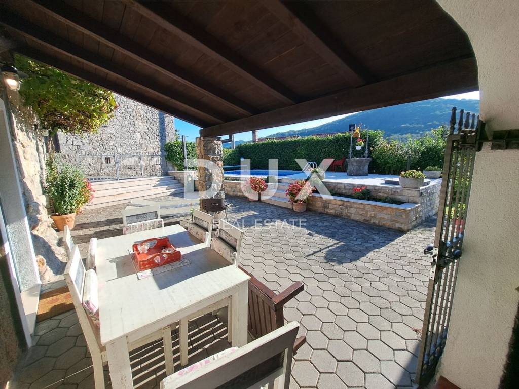 This property is located in an extremely attractive location, surrounded by greenery, offering its owners peace and quiet. In addition, the distance to the sea and Opatija is only 15 minutes by car. A wonderful property for lovers of stone villas, surrounded by greenery, located on a plot of 363 m2, with a total living area of 147 m2. On the ground floor there is a spacious living room, dining room and kitchen, which form an open space, and a bathroom. There is also a room with an open fireplace and a tavern, providing an additional cozy space for socializing and relaxing. Upstairs there are three bedrooms and another bathroom. In addition to the villa itself, there is also a garage of 38 m2, a swimming pool, a sunbathing area and a covered terrace on the beautifully maintained garden. This is a great property for vacation and living as well as for investment purposes. Opatija, a beautiful coastal town located on the Adriatic Sea, is a famous tourist destination for tourists from all over the world. The city is surrounded by beautiful nature, at the foot of the Učka mountain. Opatija is surrounded by charming small towns with old houses located in narrow streets rich in history. The streets of the city of Opatija are made up of properties that stand out with their specific architecture and villas that date from the Habsburg period. A large selection of beaches, crystal clear sea and various tourist services are the key factors that make Opatija, with its hinterland, a perfect tourist destination and an excellent investment choice. Dear clients, the agency commission is charged in accordance with the General Business Conditions www.dux-nekretnine.hr/opci-uvjeti-poslovanja