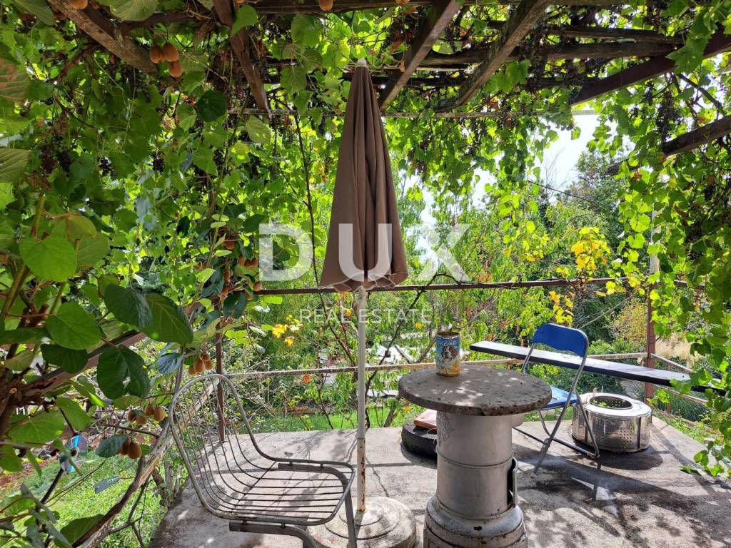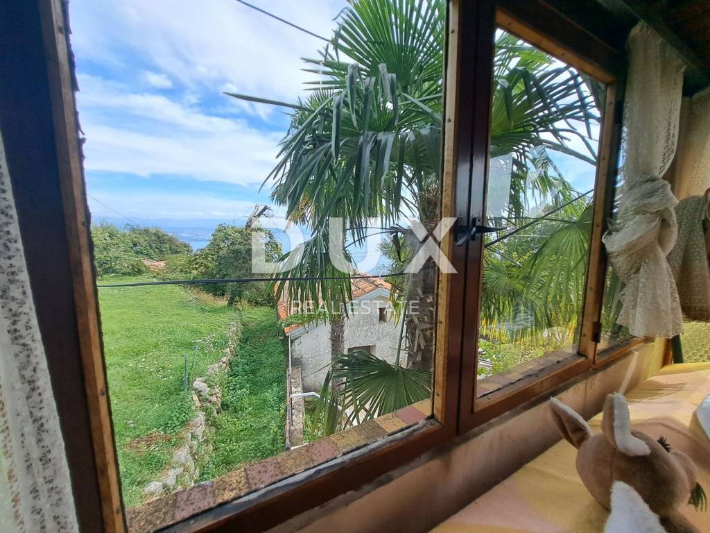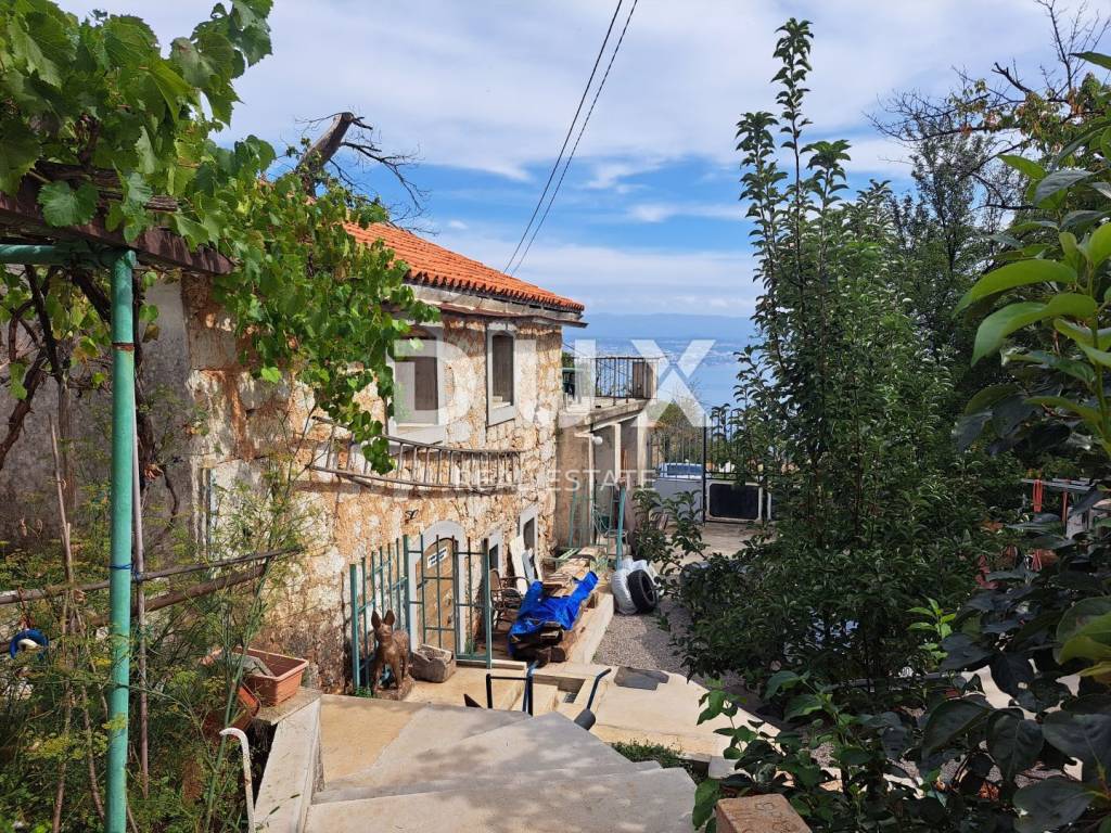 This older stone house with a total area of 260 m2 represents a real oasis of peace and traditional Mediterranean charm. It offers an incredible panoramic view of the Kvarner Bay and the slopes of Učka. It consists of a sunny living room, four bedrooms, two bathrooms and a rustic kitchen. In addition, the house has a garage of 45 m2 for safe parking of vehicles. It is 1300 meters away as the crow flies and only an 8-minute drive to the sea. Surrounded by green trees and a flower garden, this house offers great potential for renovation and adaptation to your needs, while at the same time giving you access to the natural environment and a beautiful seaside setting.