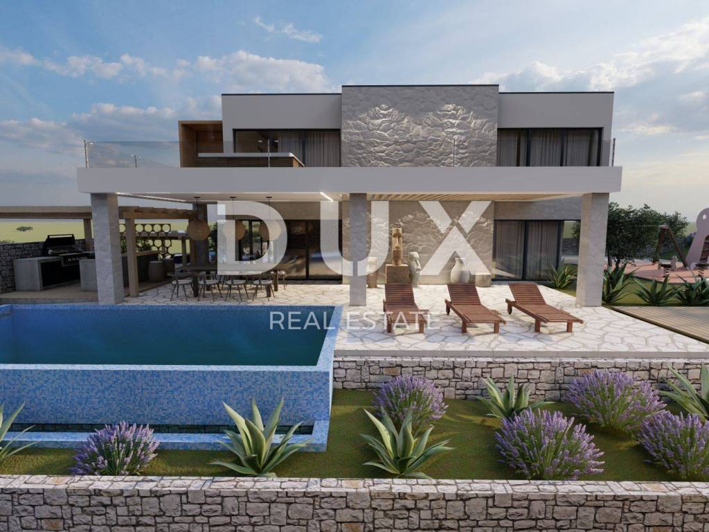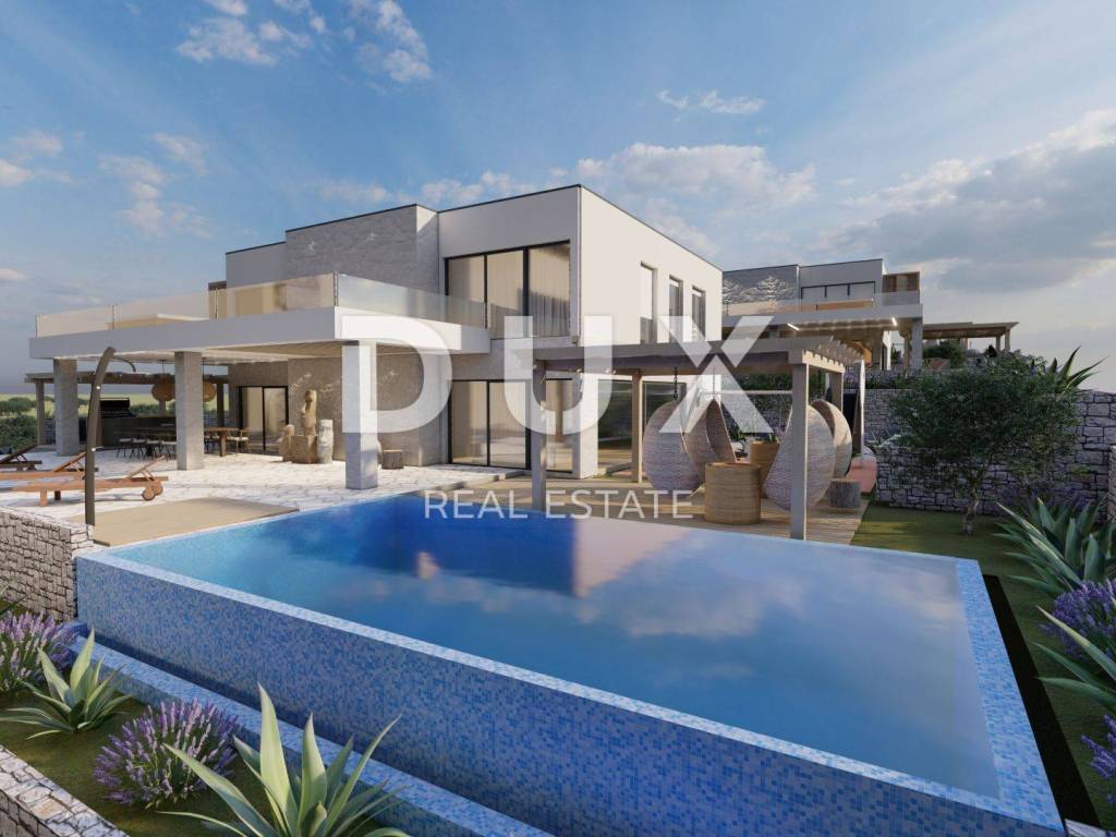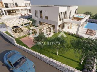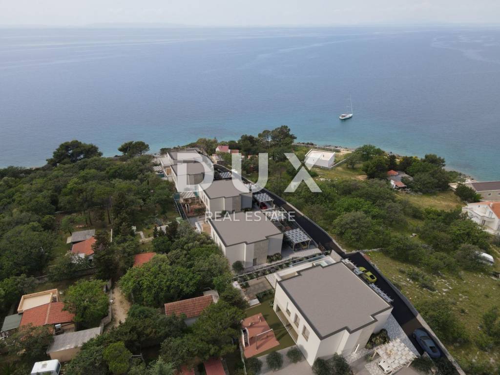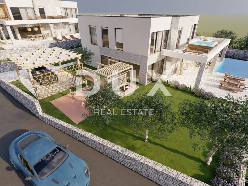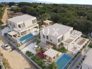 We mediate in the sale of exclusive villas just 100 meters from the sea in the vicinity of Novalja on Pag. The project of a total of 5 villas, 3 of which are for sale, is located right next to the sea in a quiet bay with a view of the surrounding islands. The villas are under construction, and the planned completion date is the 6th month of 2024. Each villa is carefully designed and placed on the plot in such a way that the future buyer could enjoy the benefits of nature (sea view) without violating privacy. Considering that it is a modern building, the villas are decorated with a beautiful covered terrace with a sun deck and swimming pool, an incredible 'open space' concept on the ground floor and spacious bedrooms, each with its own bathroom. Each villa is additionally equipped with a jacuzzi, sauna and underfloor heating with a heat pump. In addition to quality construction, the investor's comfort is the first priority, so it is not surprising that each room is spacious and has natural lighting. Each villa consists of a ground floor and a first floor: GROUND FLOOR: - incredible 'open space' concept of kitchen, dining room and living room of 106 m2 - machine room for underfloor heating with heat pump - guest toilet - cloakroom - internal staircase - covered terrace of 16 m2 - sunbathing area and terrace - 'infinity' pool 1ST FLOOR: - 4 bedrooms of 18-19 m2 - 4 bathrooms of 6.5 m2 - south-facing terrace of 16 m2 - jacuzzi - sauna The price of the property includes kitchen furniture, high-quality ceramics, parquet, dining room, furniture in the rooms. In agreement with the investor, the buyer can choose sanitary facilities, living room and additional furniture. The garden includes 3 parking spaces, additional terraces, a garden with cascades, etc. AGENT'S RECOMMENDATION!
